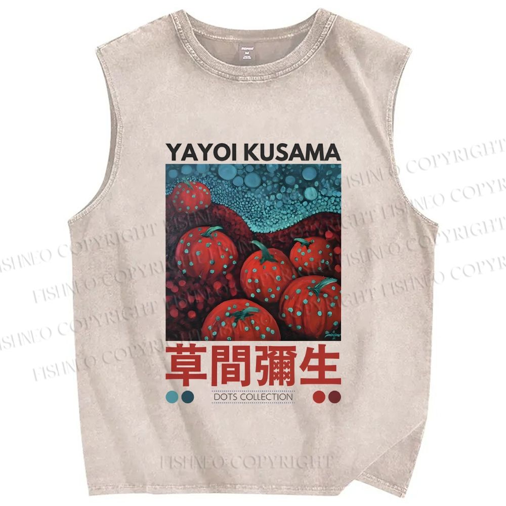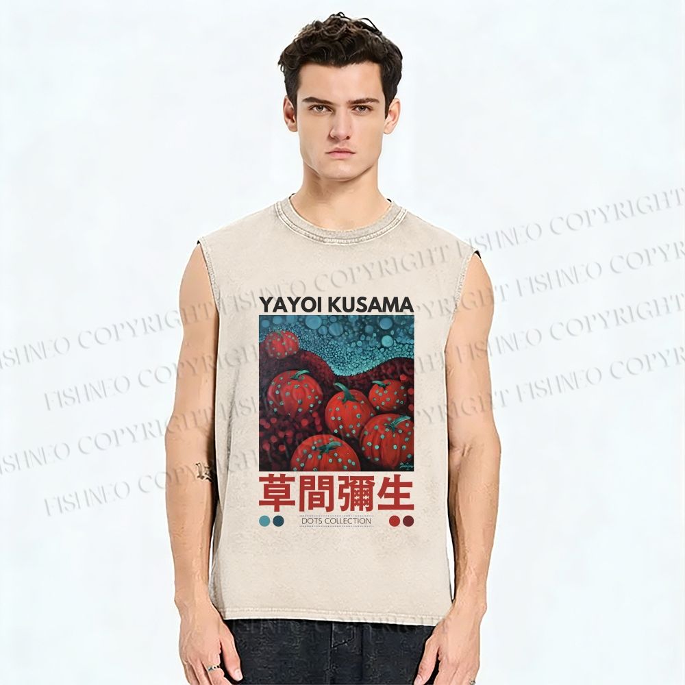 Unisex Yayoi Kusama Dots Pumpkin Printed Washed Tank Top