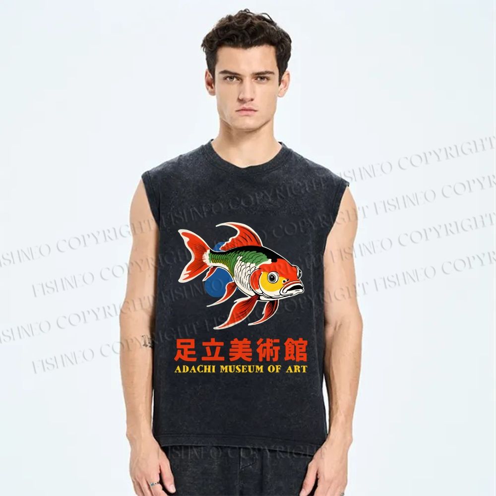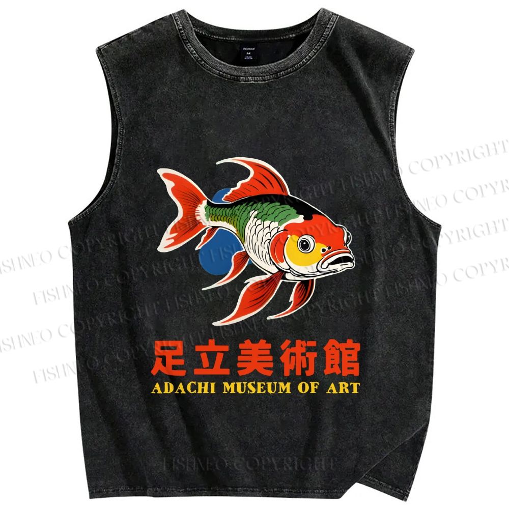 Unisex Japanese Fish Vintage Printed Washed Tank Top