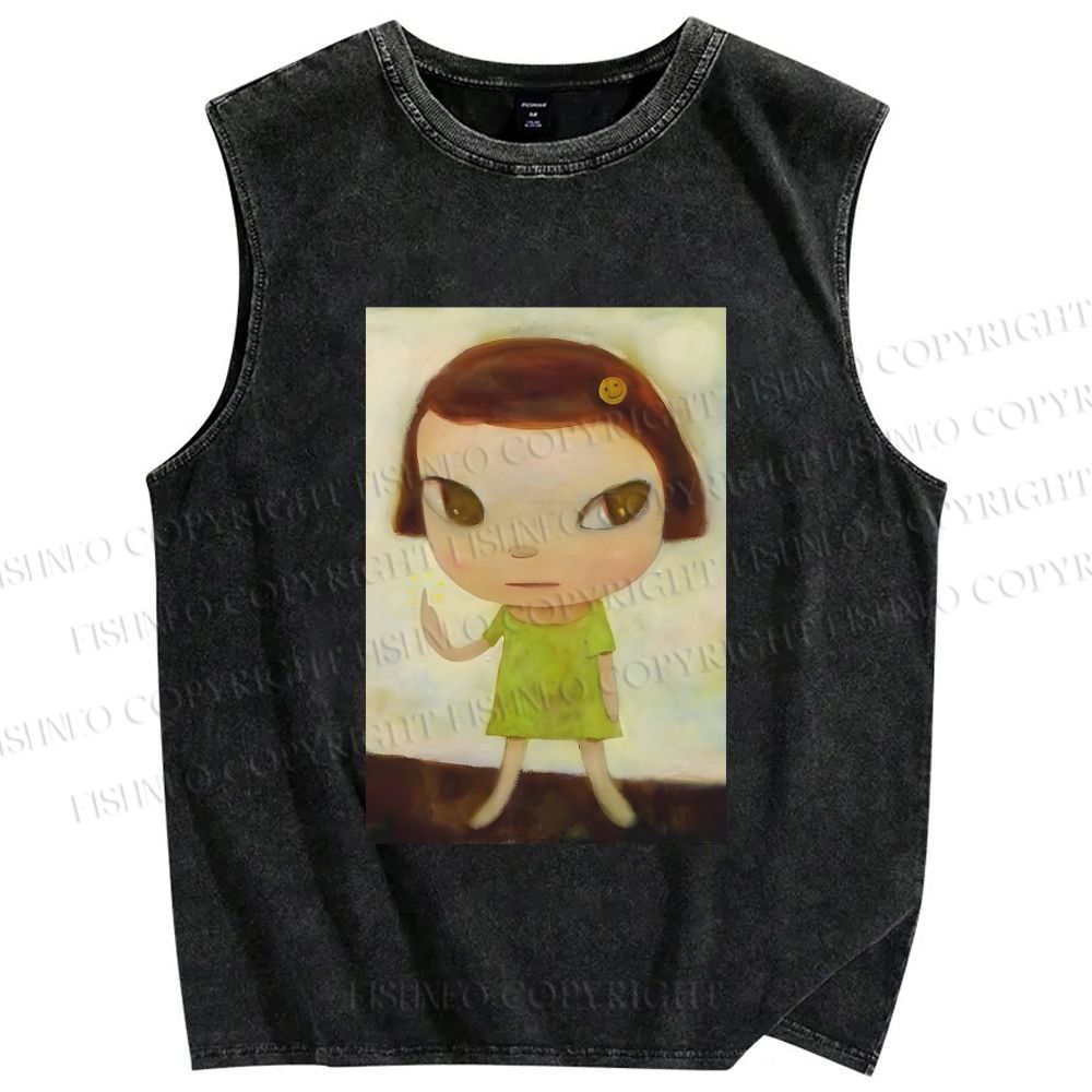 Unisex Yoshitomo Nara Printed Washed Tank Top