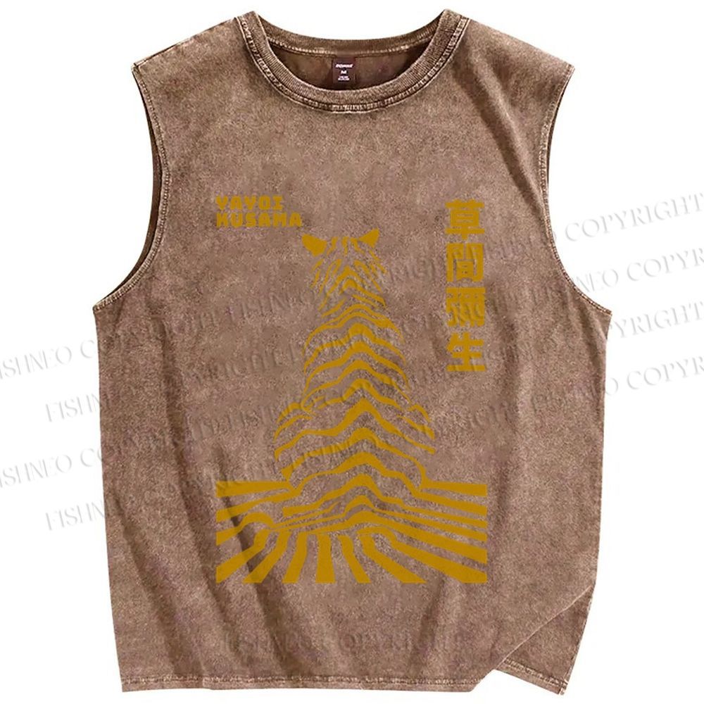 Unisex Japanese Yayoi Kusama Panther Printed Washed Tank Top