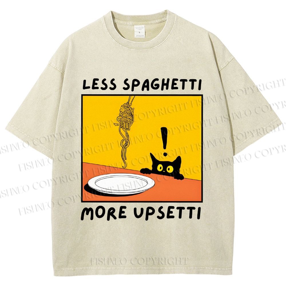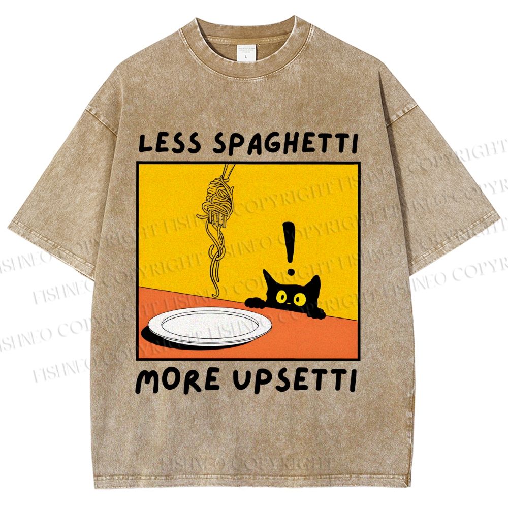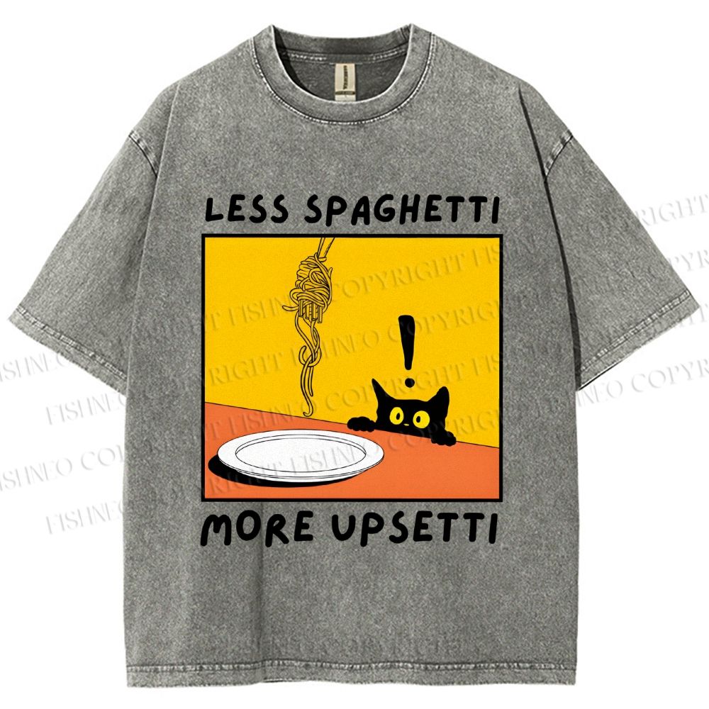 Unisex Less Spaghetti More Upsetti Cat Printed Washed Tee