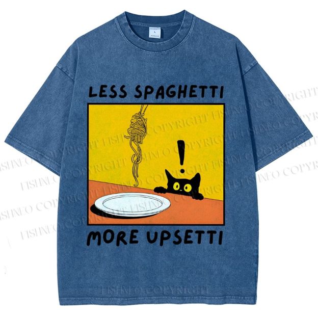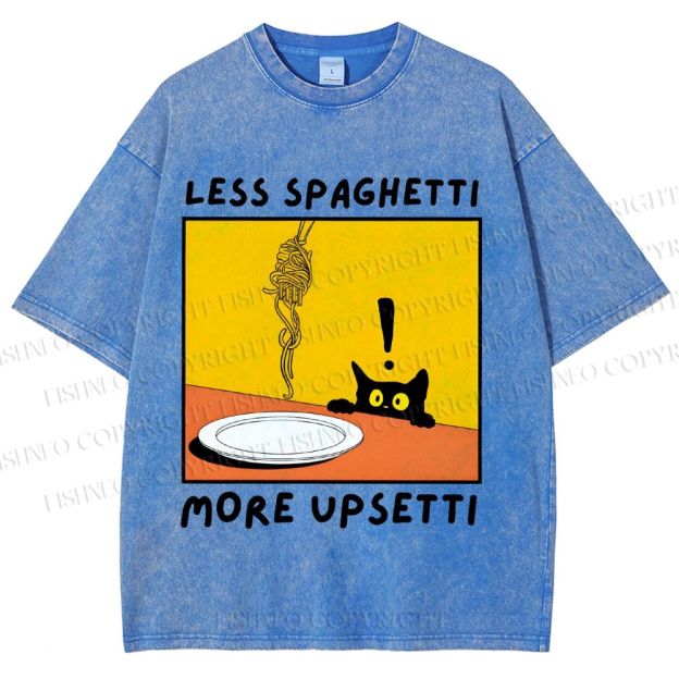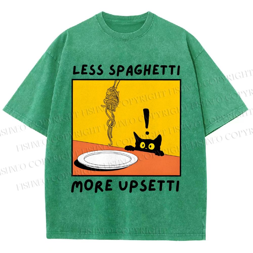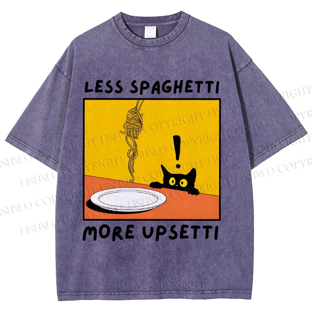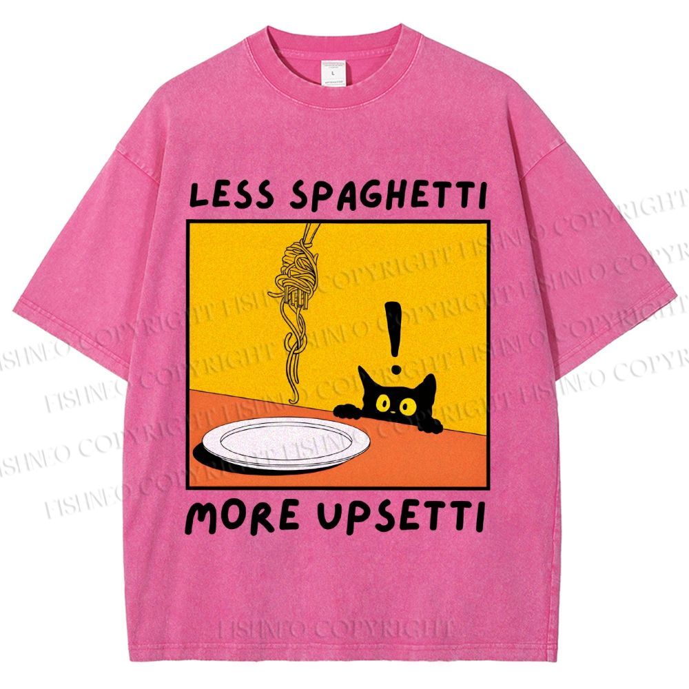 Unisex Less Spaghetti More Upsetti Cat Printed Washed Tee