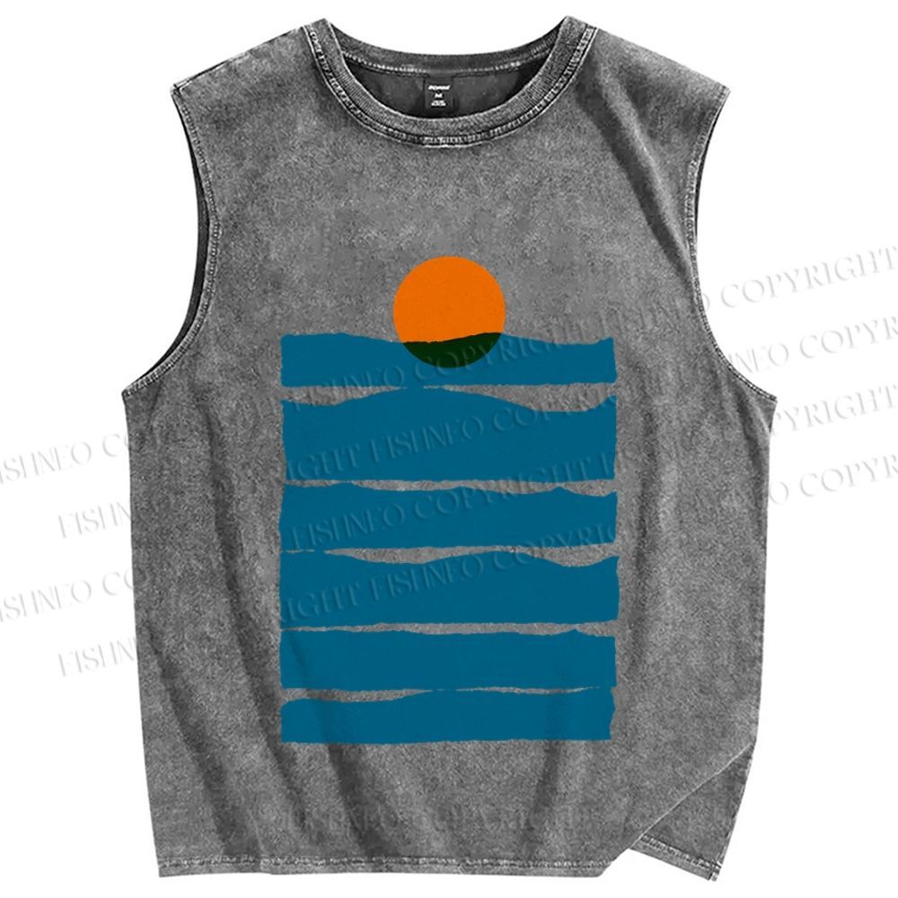 Unisex Sea Wave Sunset Printed Washed Tank Top
