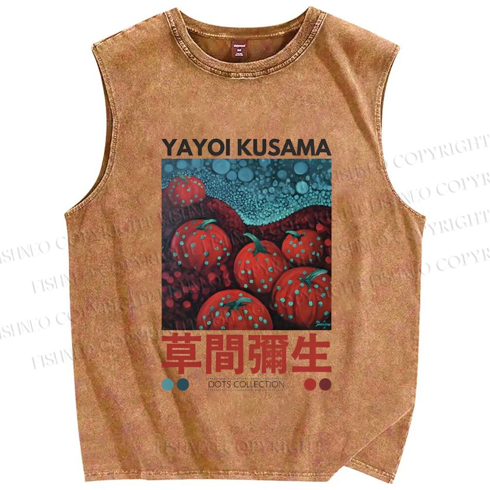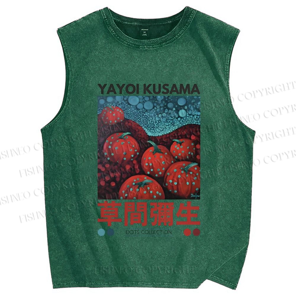 Unisex Yayoi Kusama Dots Pumpkin Printed Washed Tank Top