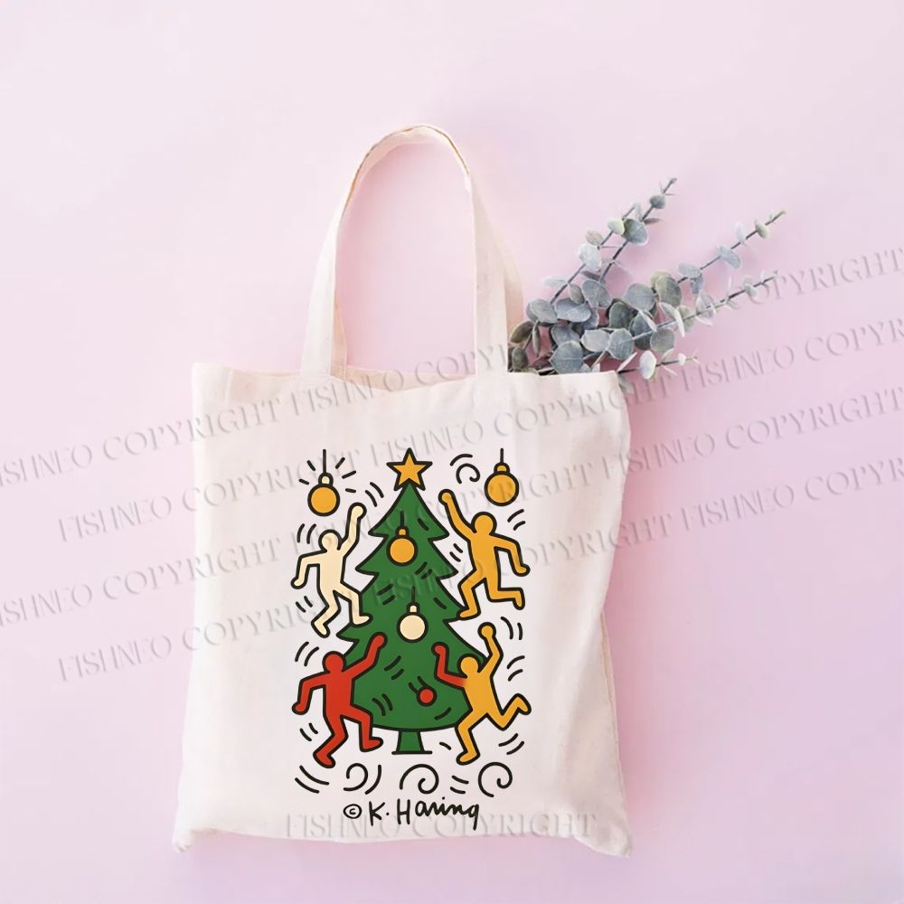 Christmas Keith Haring Vintage Printed Tote Bag