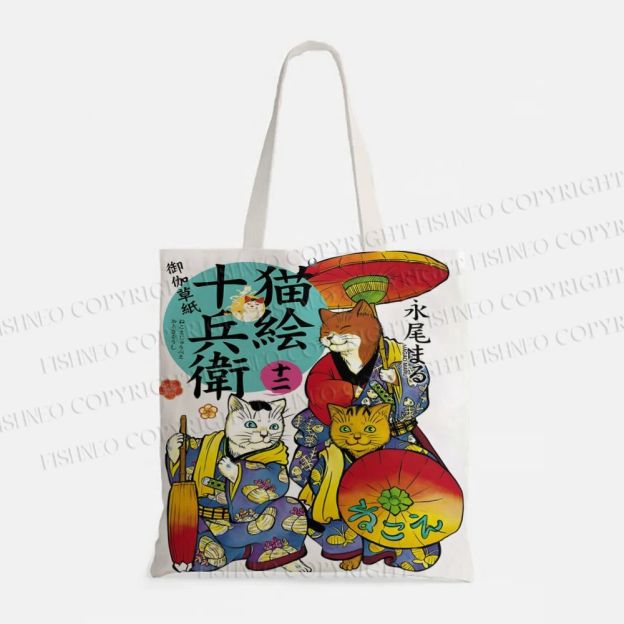 Nekoe Jubei Otogi Soushi Kimono Cat Printed Tote Bag