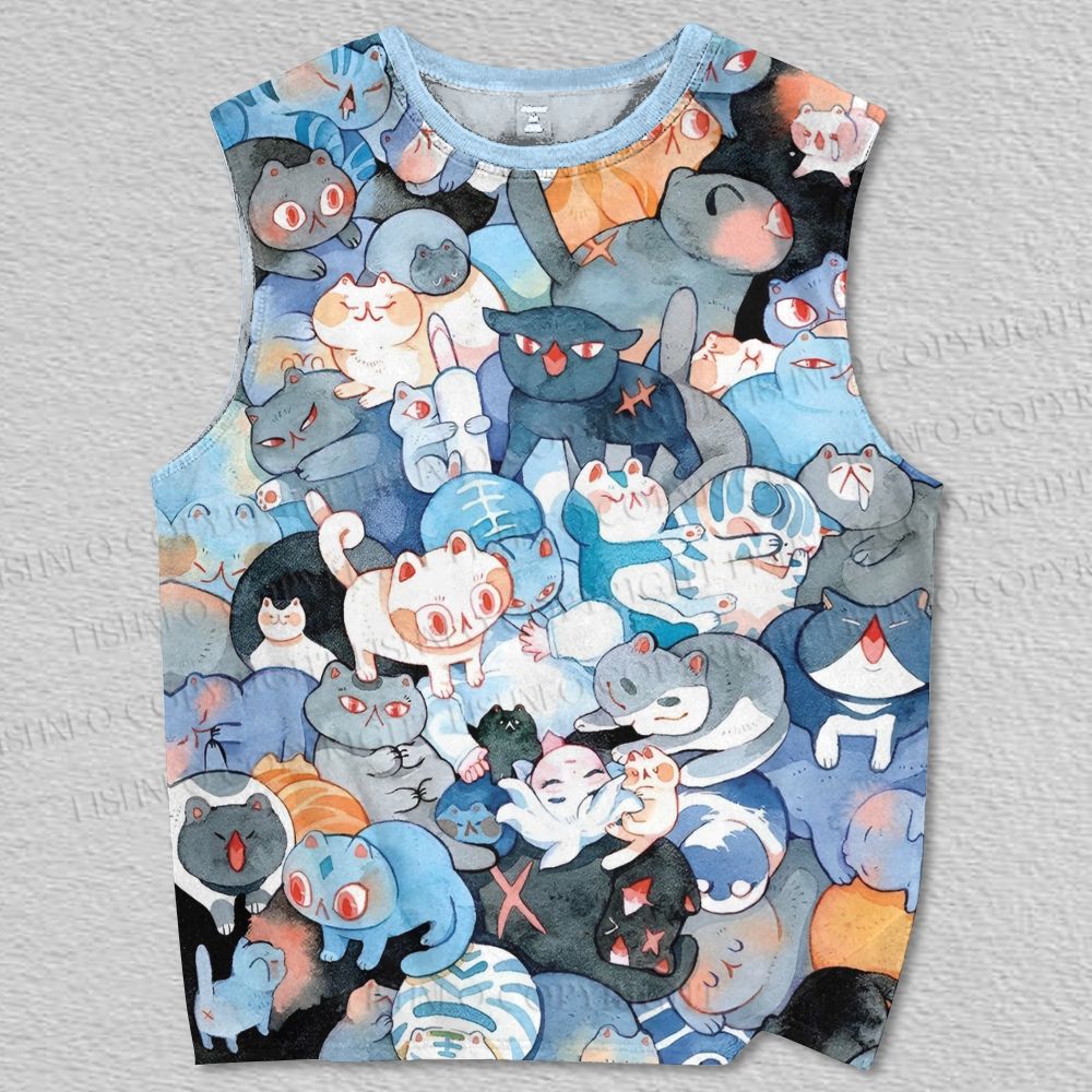 Unisex Blue Cats Printed Tank Top