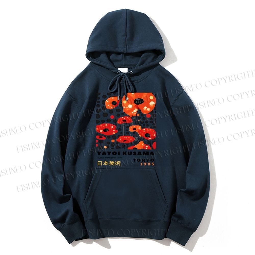 Unisex Casual Cotton Japanese Yayoi Kusama Flower Printed Hoodie