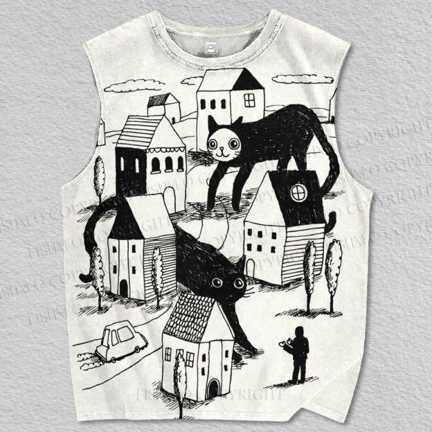 Unisex Giant Cat Village Printed Tank Top