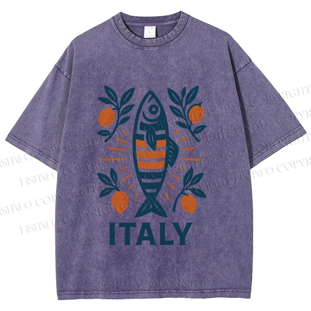 Unisex Vintage Italy Sardine Fish Printed Washed Tee