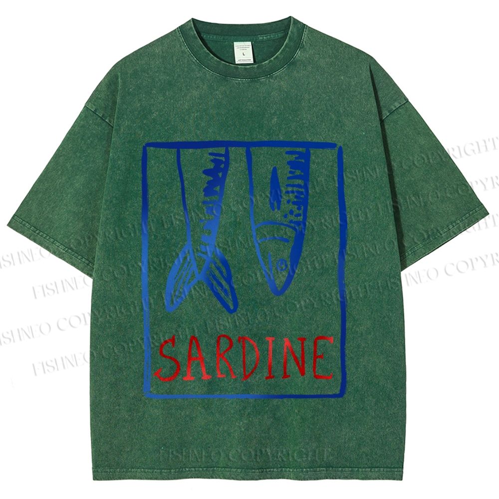 Unisex Vintage Sardine Fish In Box Printed Washed Tee