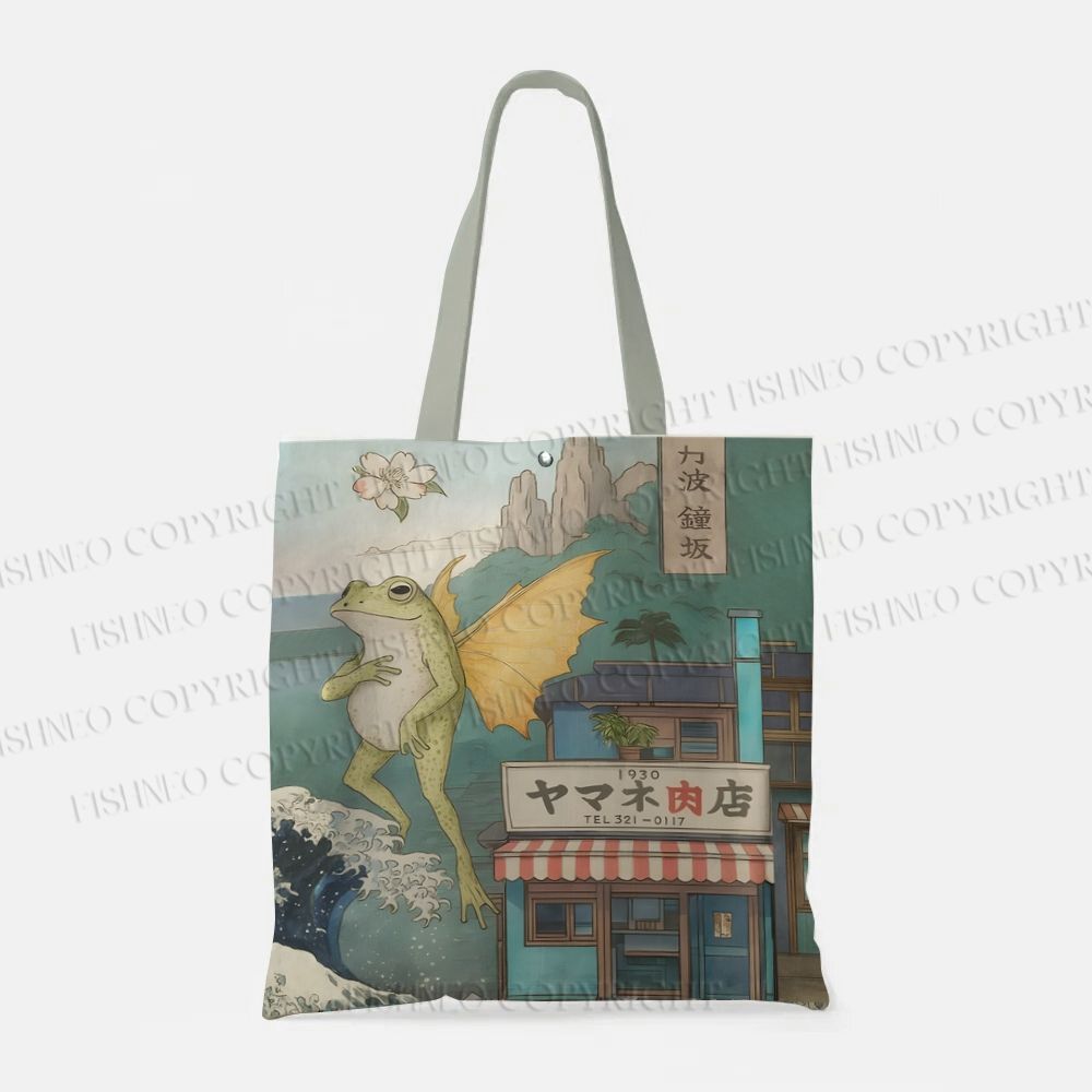 Vintage Frog Printed Tote Bag