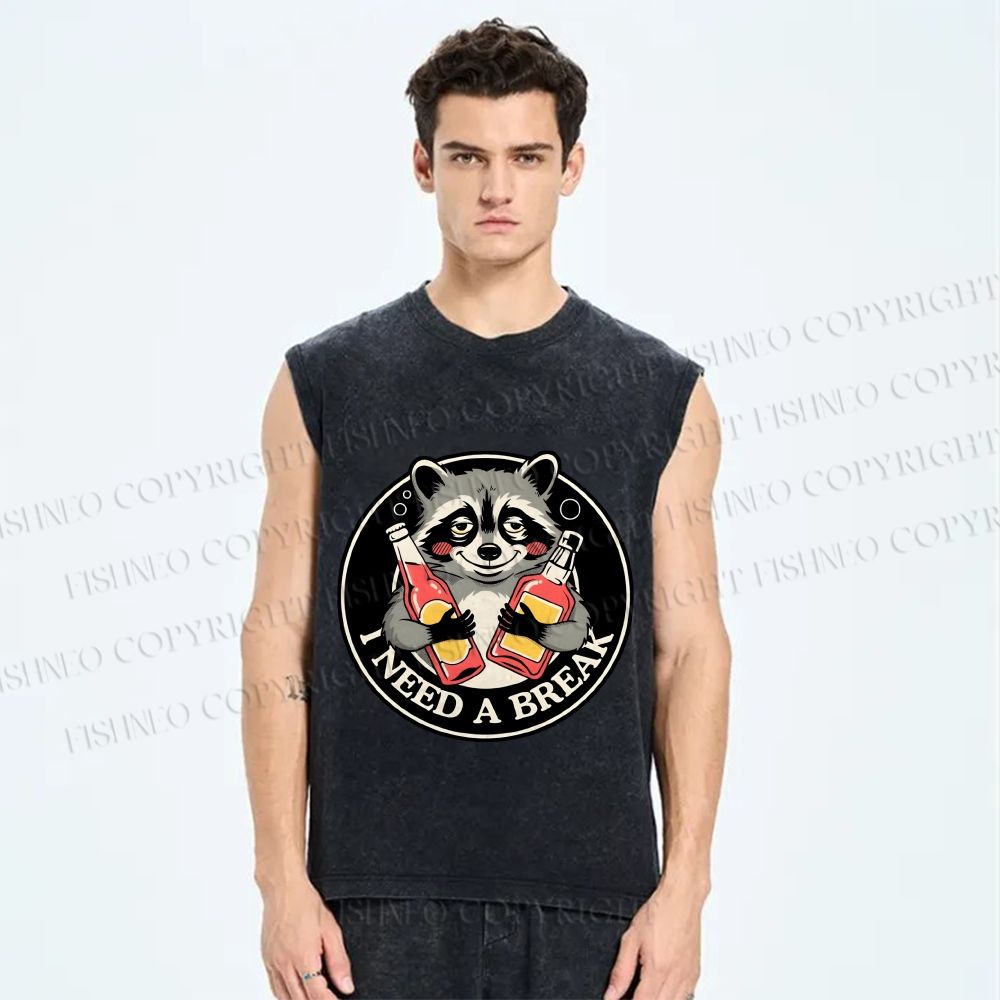 Unisex Drunk Raccoon Need A Break Printed Washed Tank Top