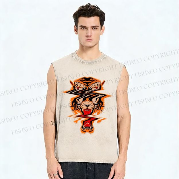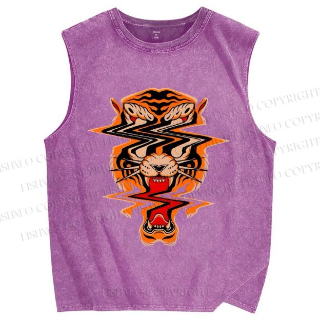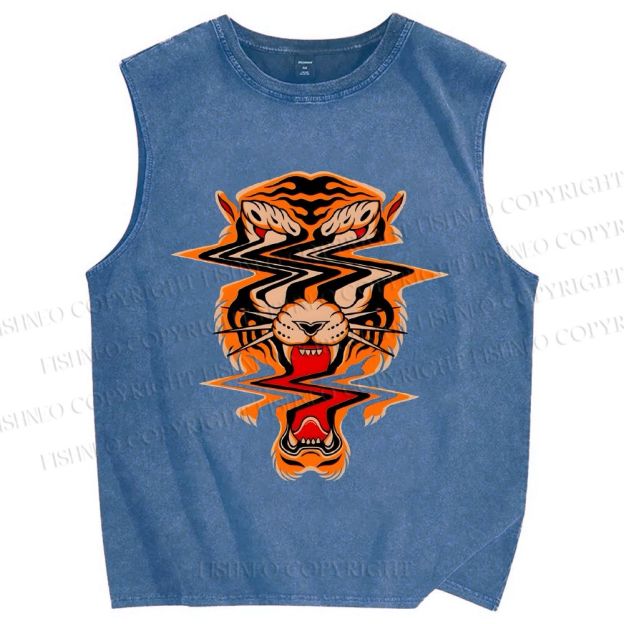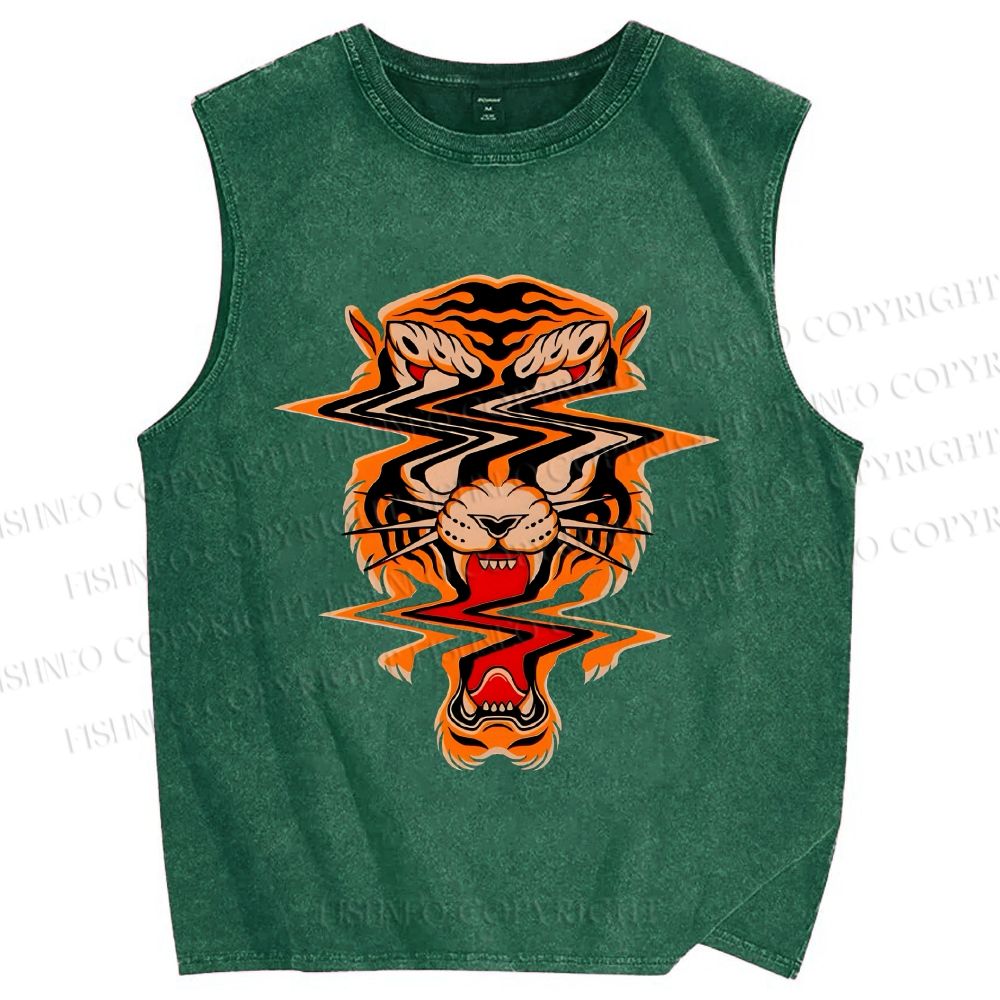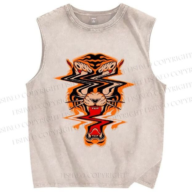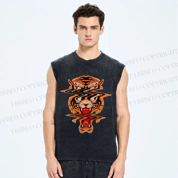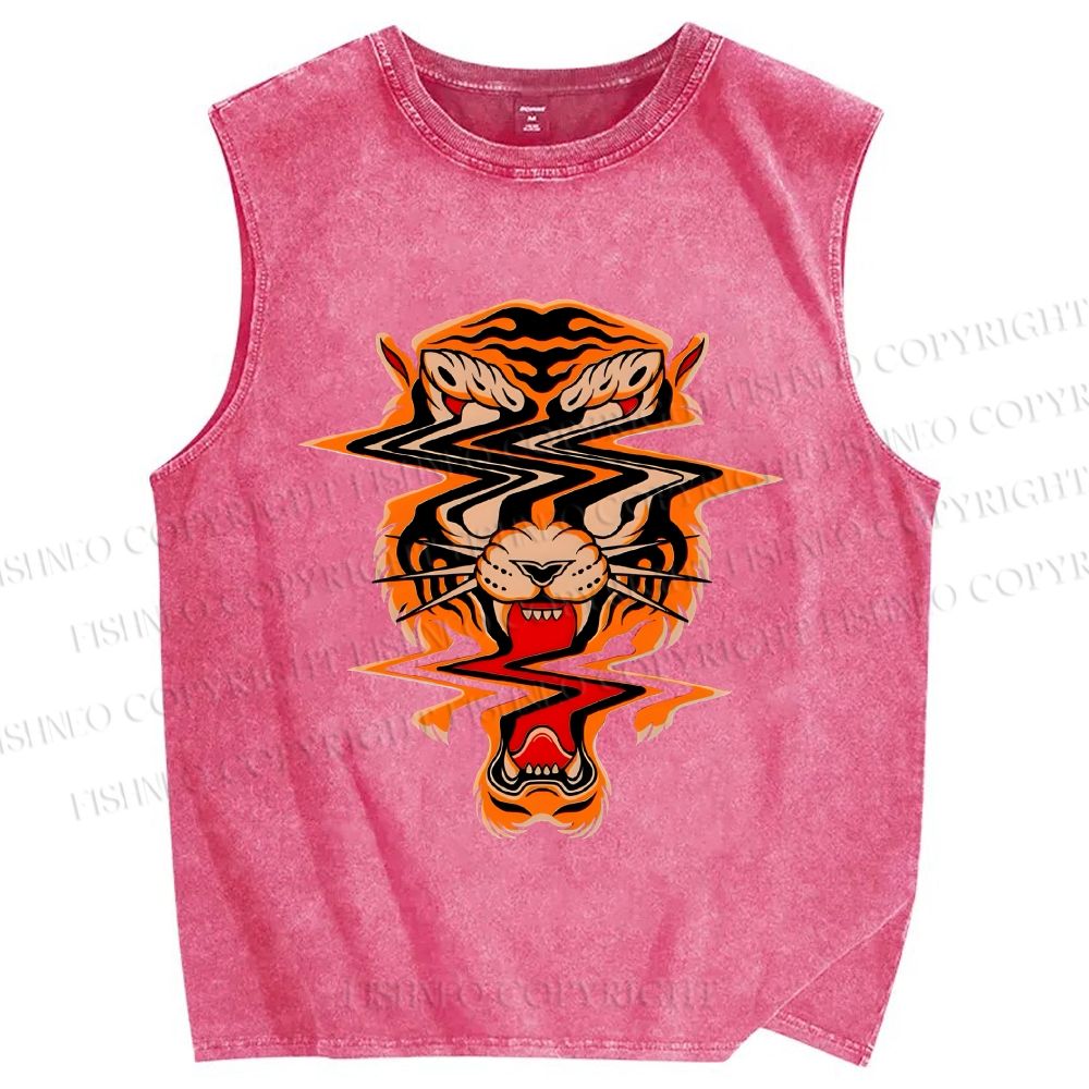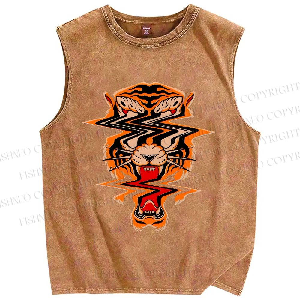 Unisex Twisted Tiger Printed Washed Tank Top