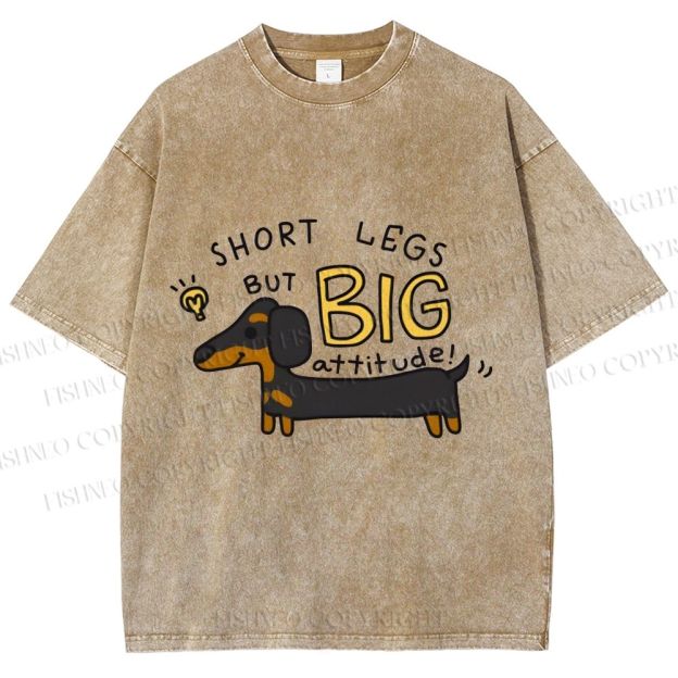 Unisex Dachshund Dog Short Legs But Big Attitude Printed Washed Tee