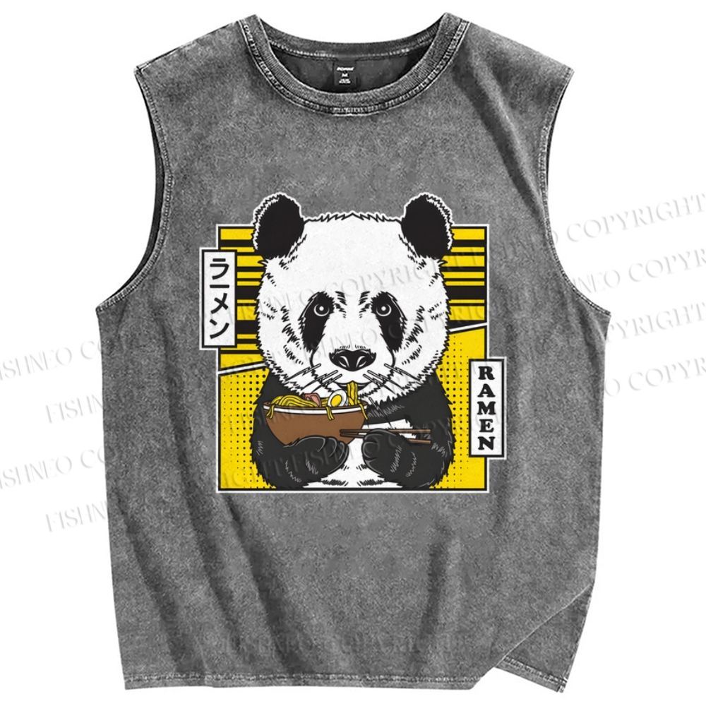 Unisex Ramen Panda Printed Washed Tank Top