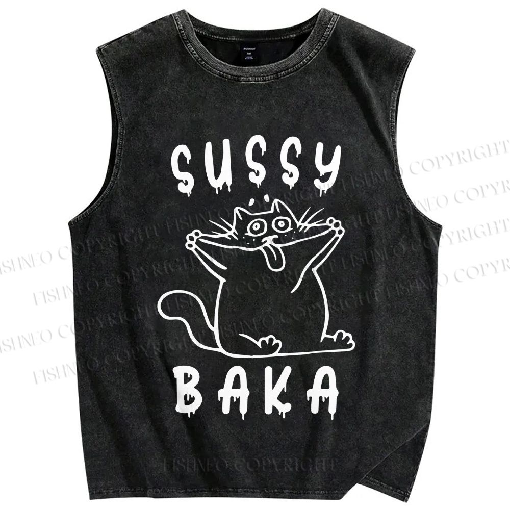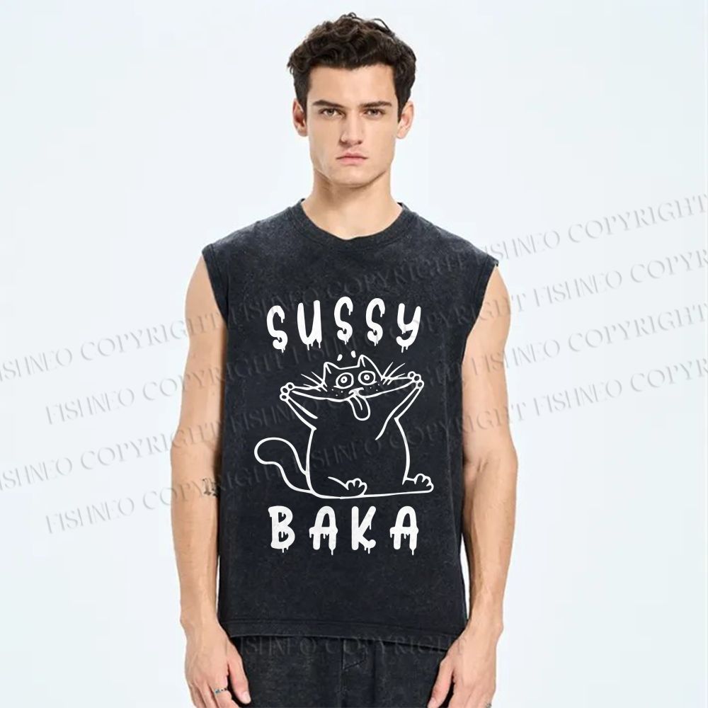Unisex Sussy Baka Cat Printed Washed Tank Top