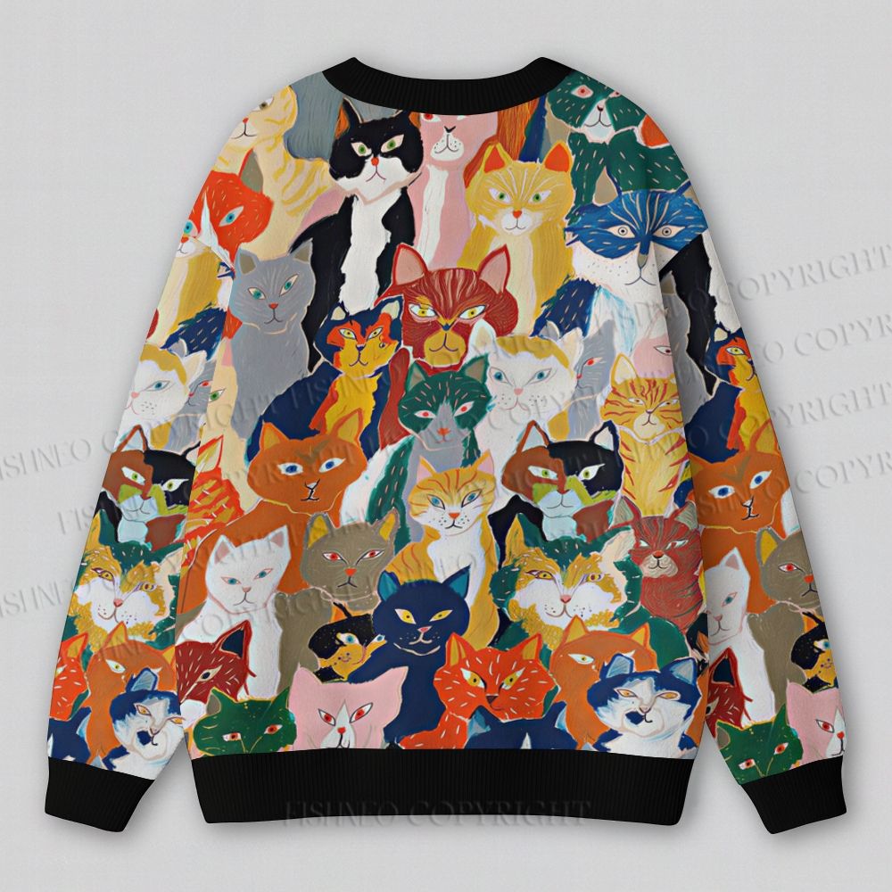 Hand Drawing Cats Ugly Cardigan Sweater