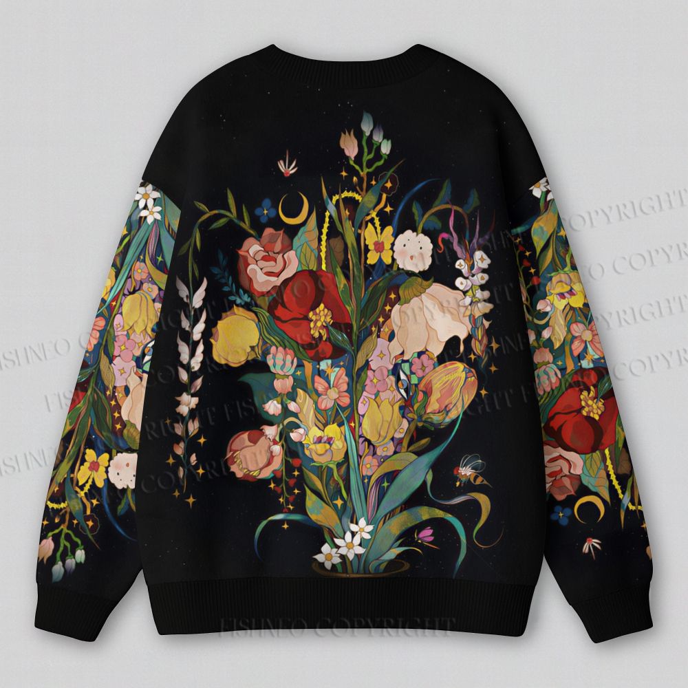 Gorgeous Magic Flowers Ugly Cardigan Sweater