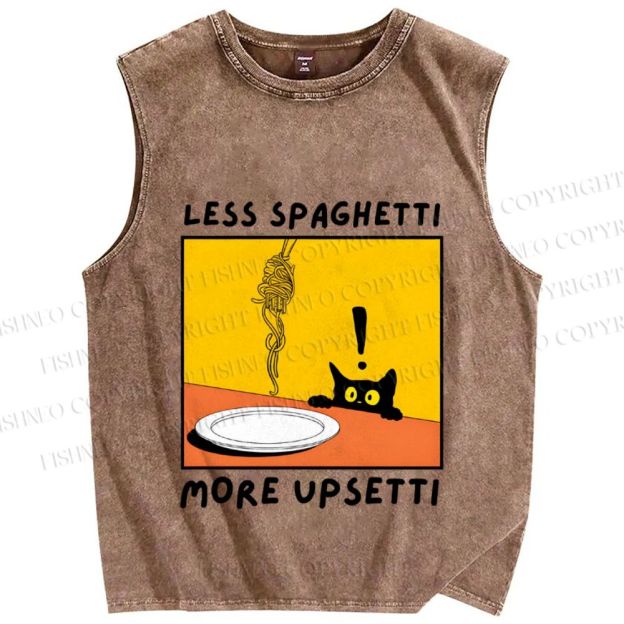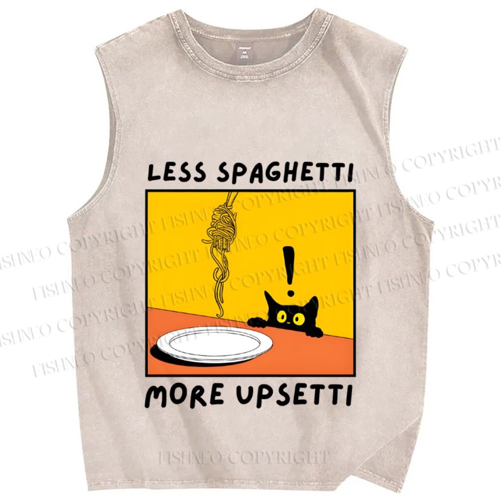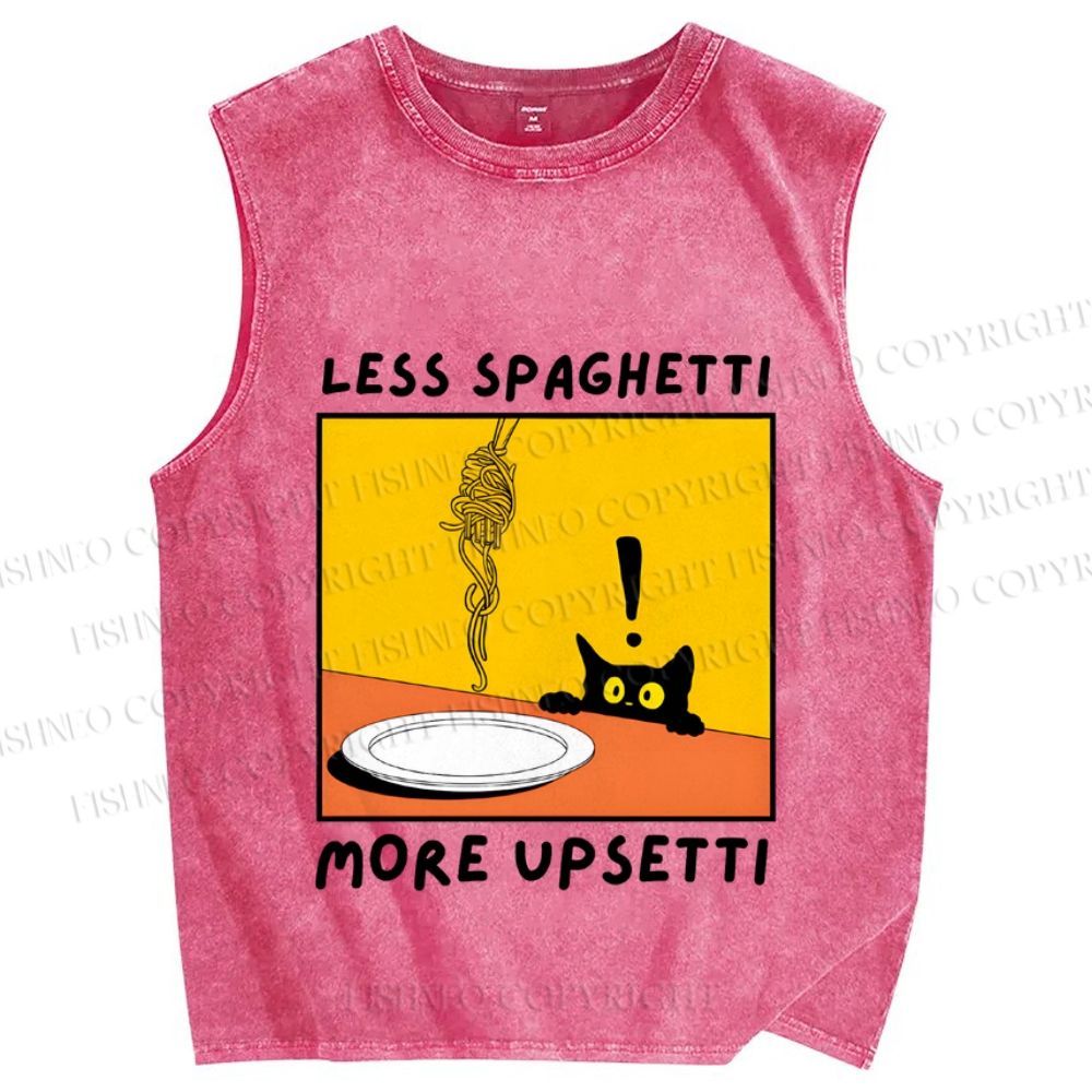 Unisex Less Spaghetti More Upsetti Cat Printed Washed Tank Top