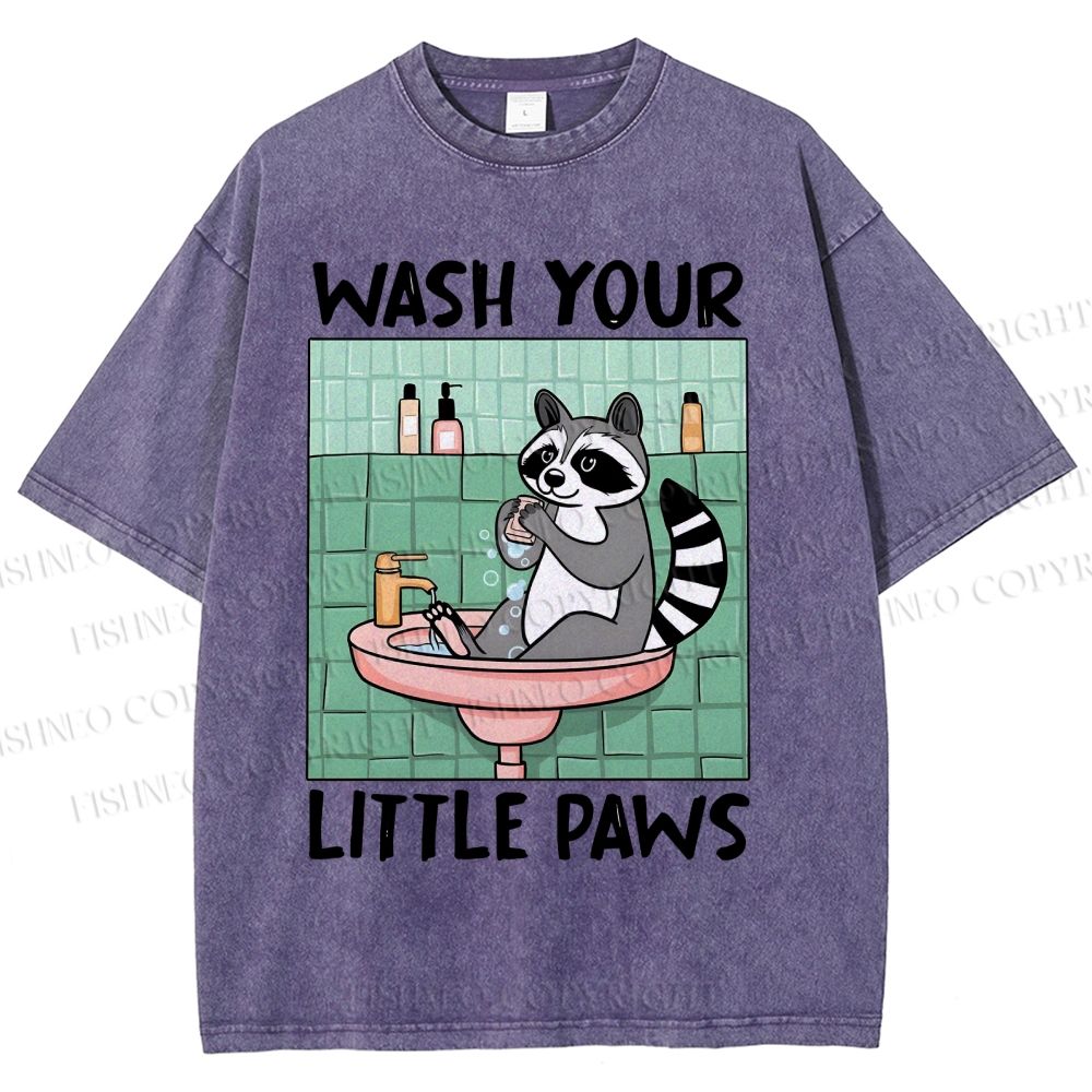 Unisex Wash Your Little Paws Raccoon Printed Washed Tee
