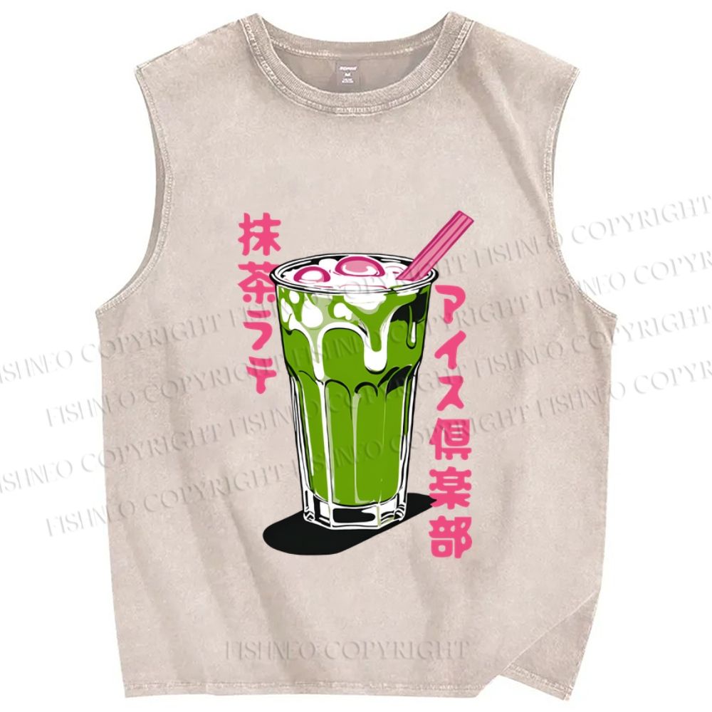 Unisex Japanese Matcha Drink Club Printed Washed Tank Top