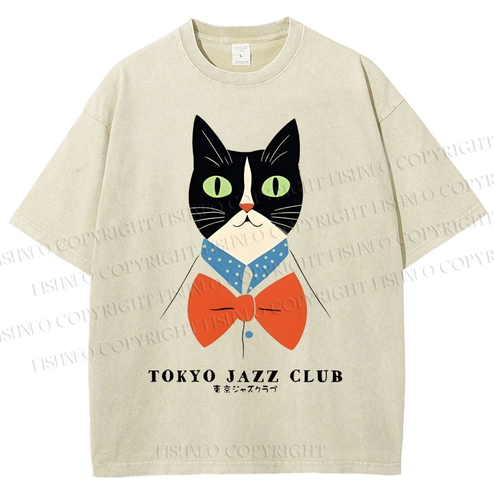 Unisex Tokyo Jazz Club Cats Printed Washed Tee