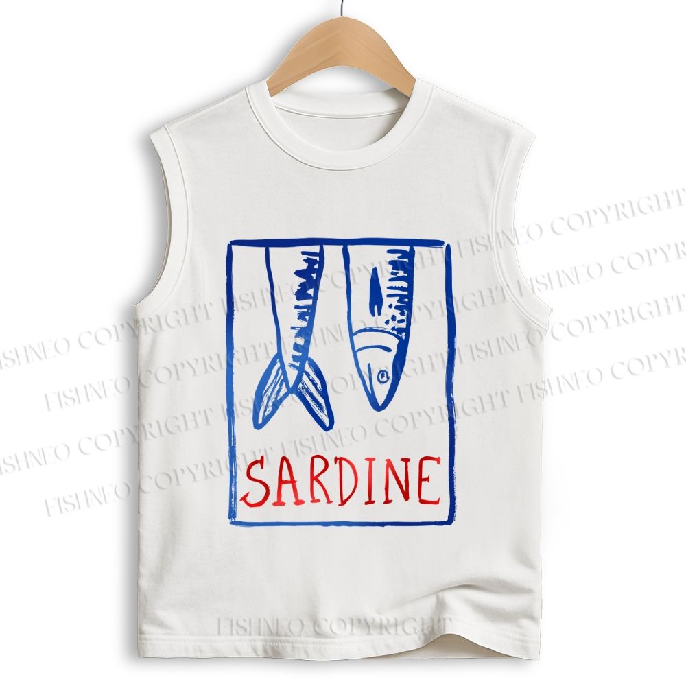Unisex Vintage Sardine Printed Cotton Tank Top