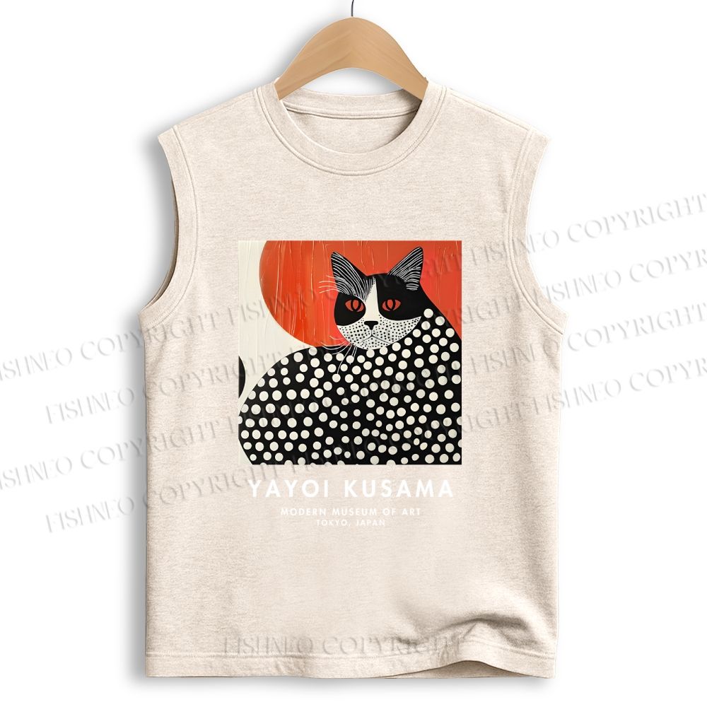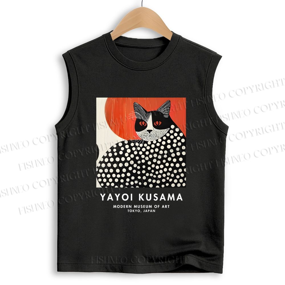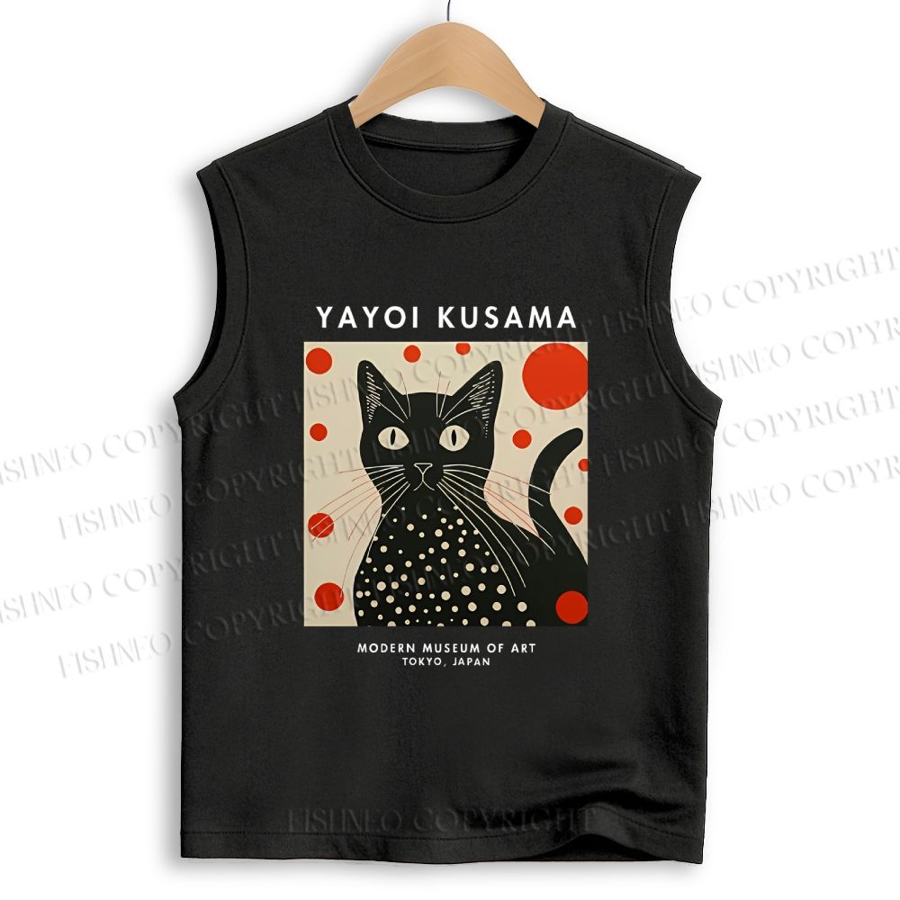 Unisex Yayoi Kusama Cat Printed Cotton Tank Top