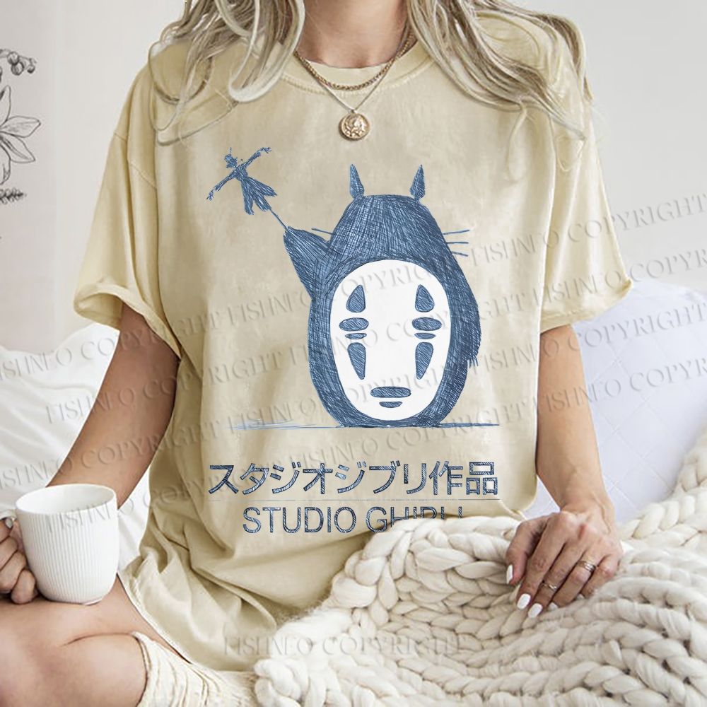 Unisex Vintage Japanese Totoro Printed Washed Tee