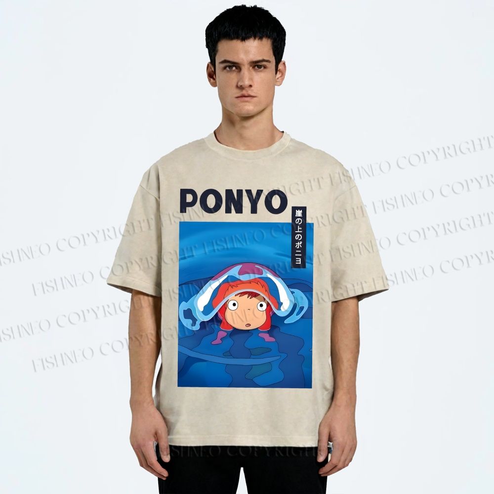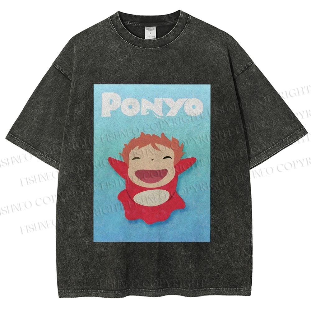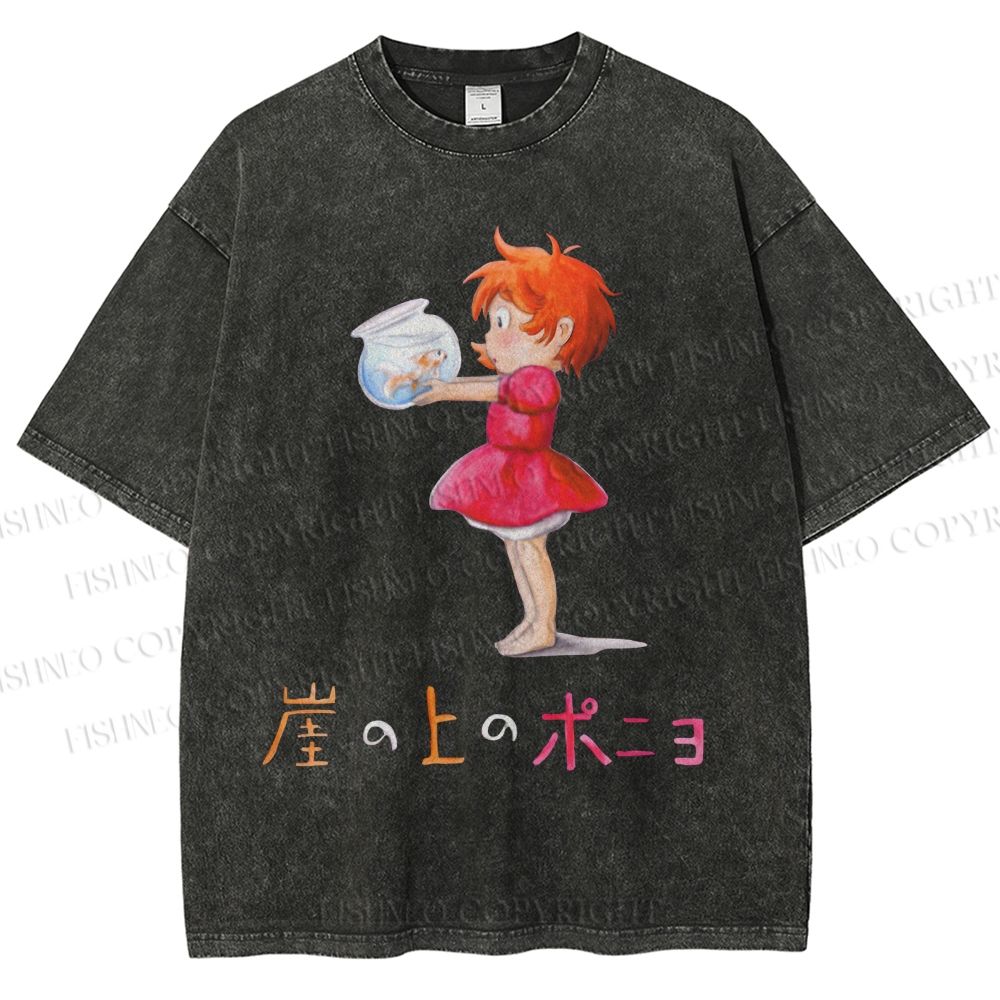 Ghibli Ponyo Anime Vintage Wash Japanese Design T-Shirt