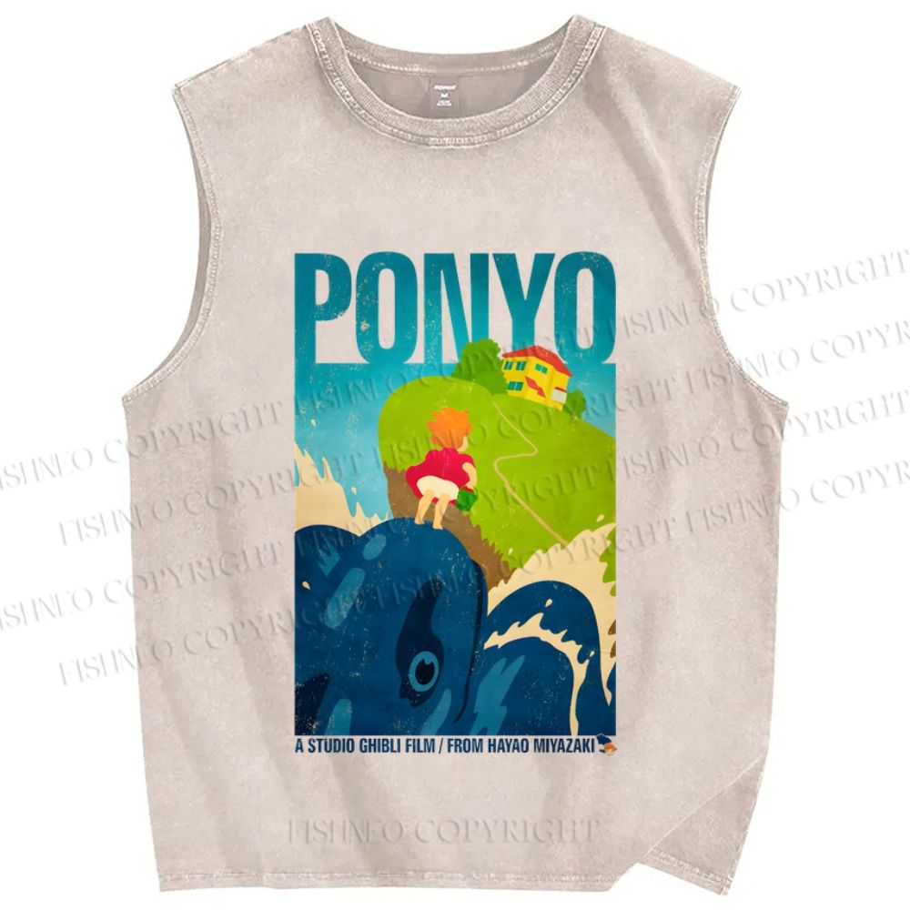Unisex Ponyo On The Cliff Printed Washed Tank Top