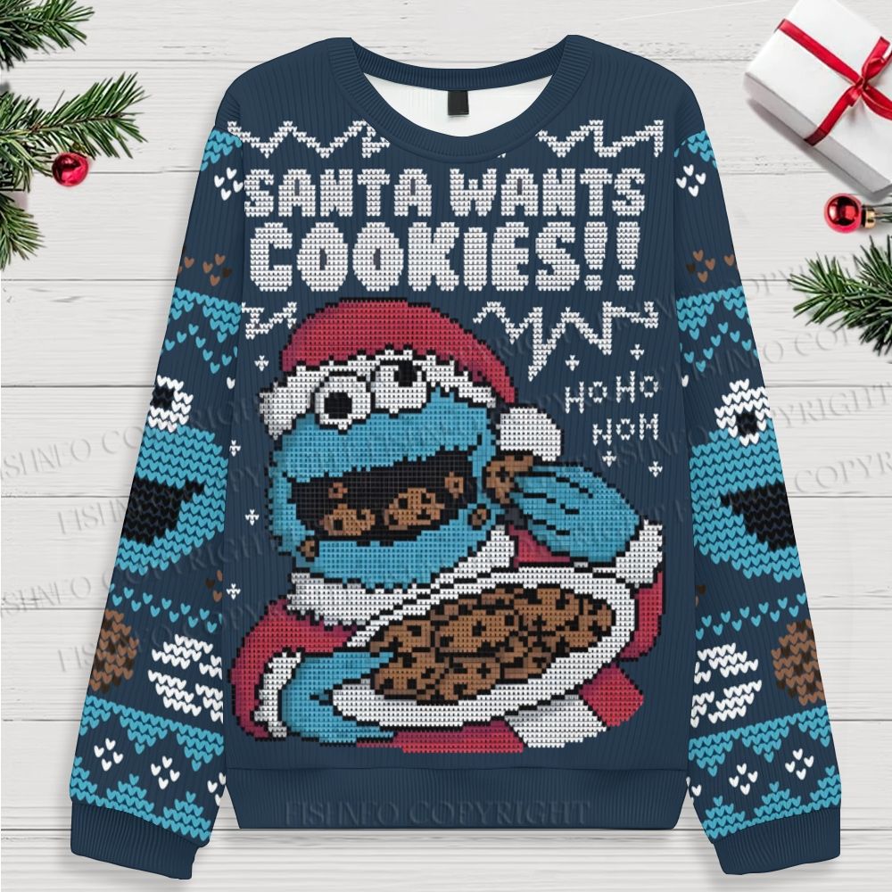 Cookie Monster Printed Ugly Christmas Sweatshirt