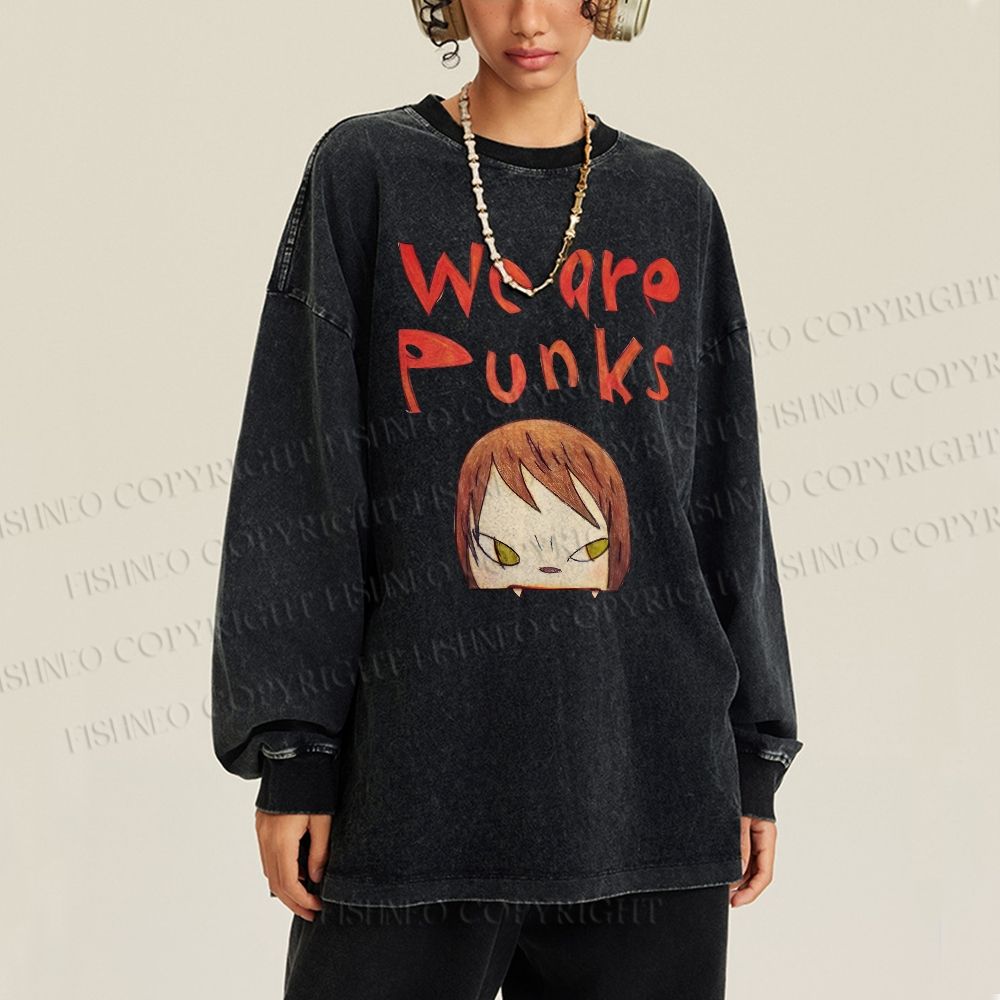 Unisex Casual Washed Yoshitomo Nara Printed Long Sleeve T-shirt