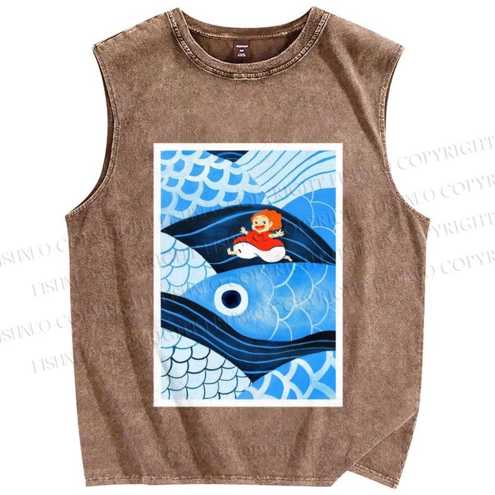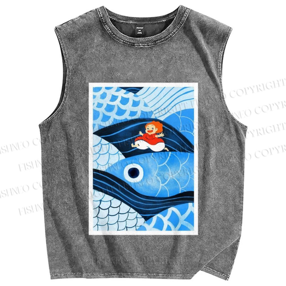 Unisex Ponyo Printed Washed Tank Top