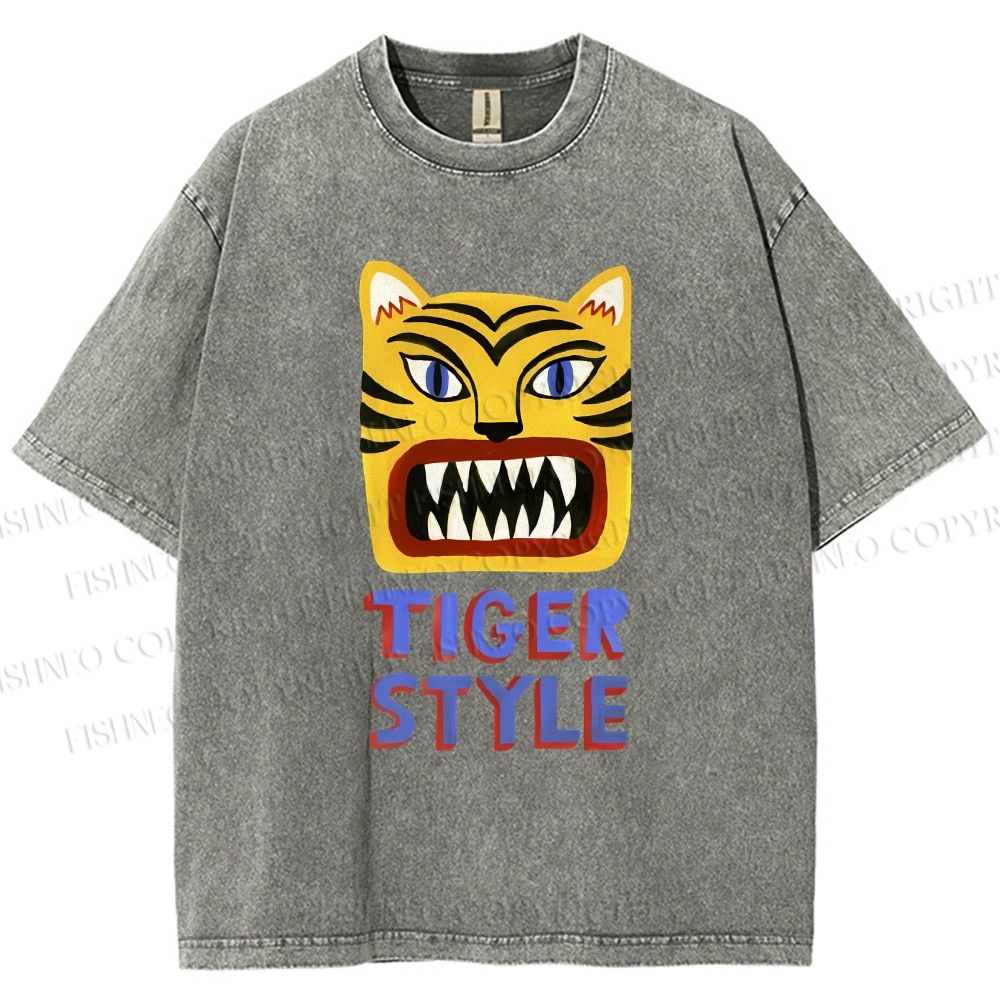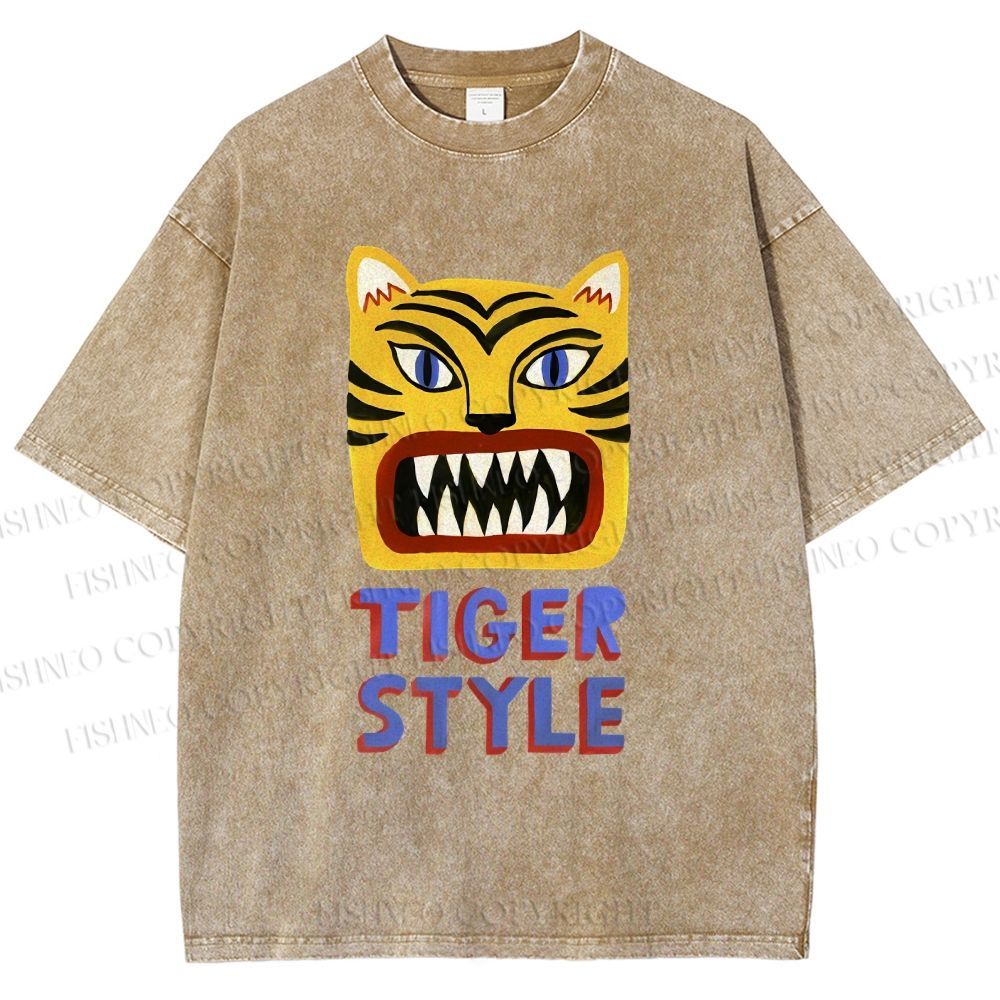 Unisex Tiger Style Printed Washed Tee