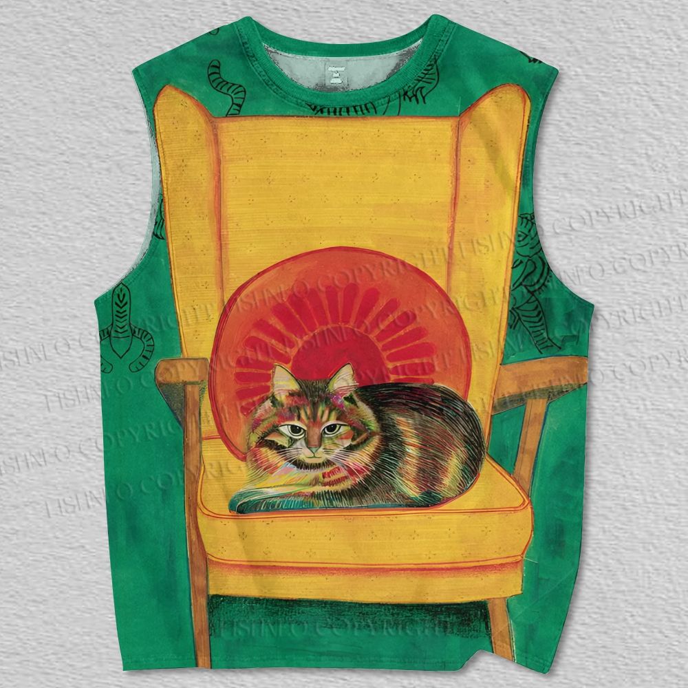 Unisex Vintage Cat On Chair Printed Tank Top