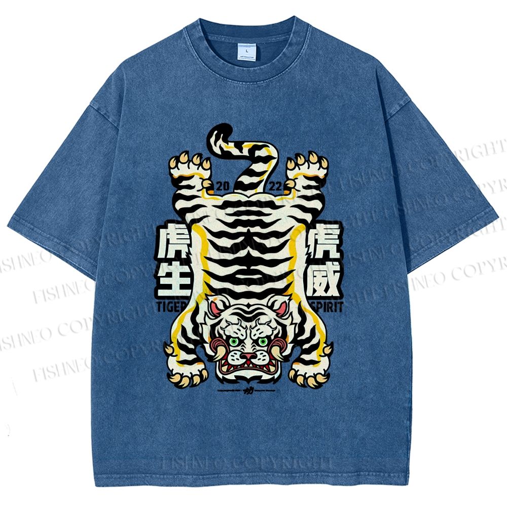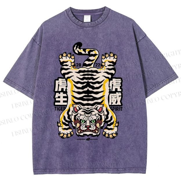 Unisex Vintage Strong Tiger Printed Washed Tee