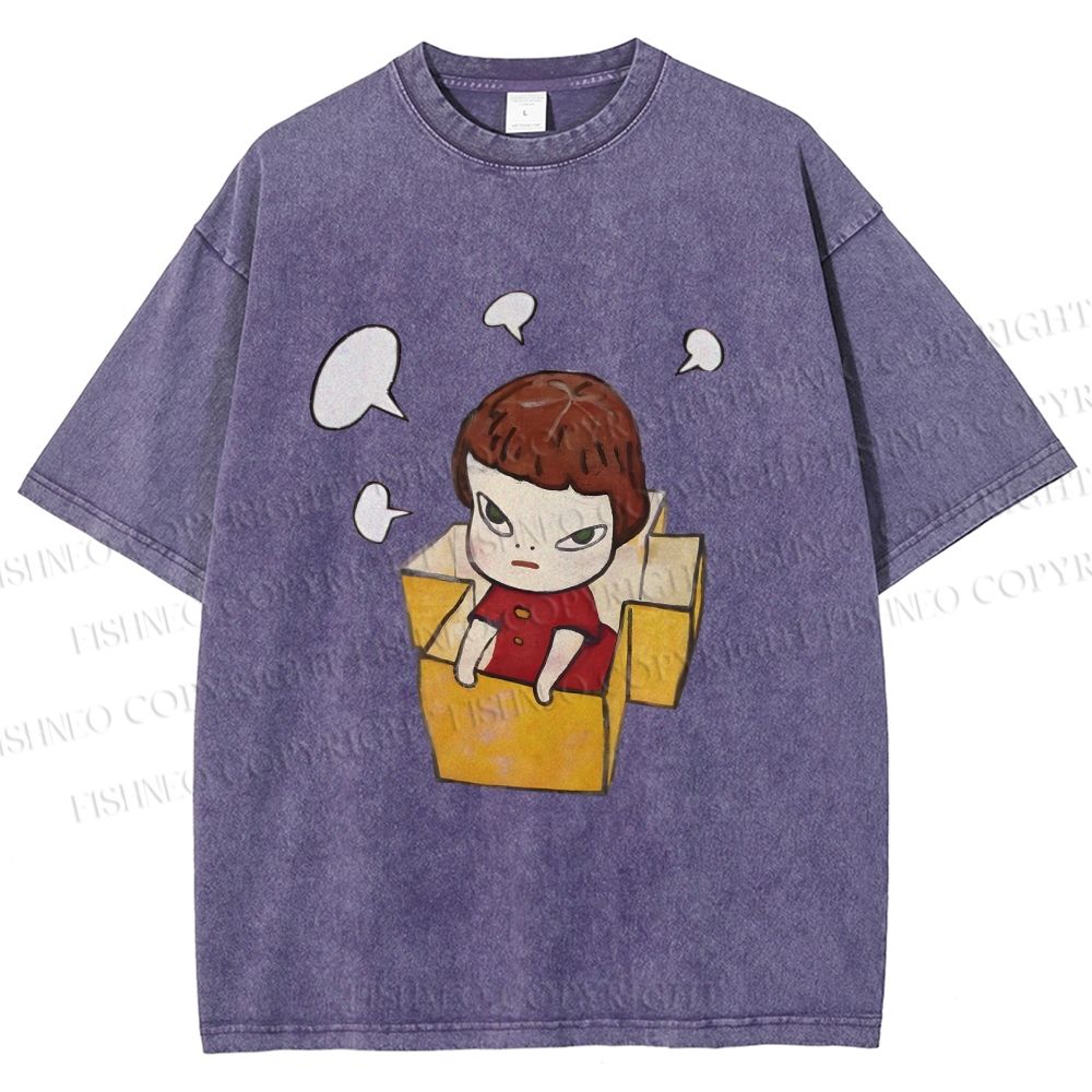 Unisex Yoshitomo Nara Girl In Box Lots Of Ideas Printed Washed Tee