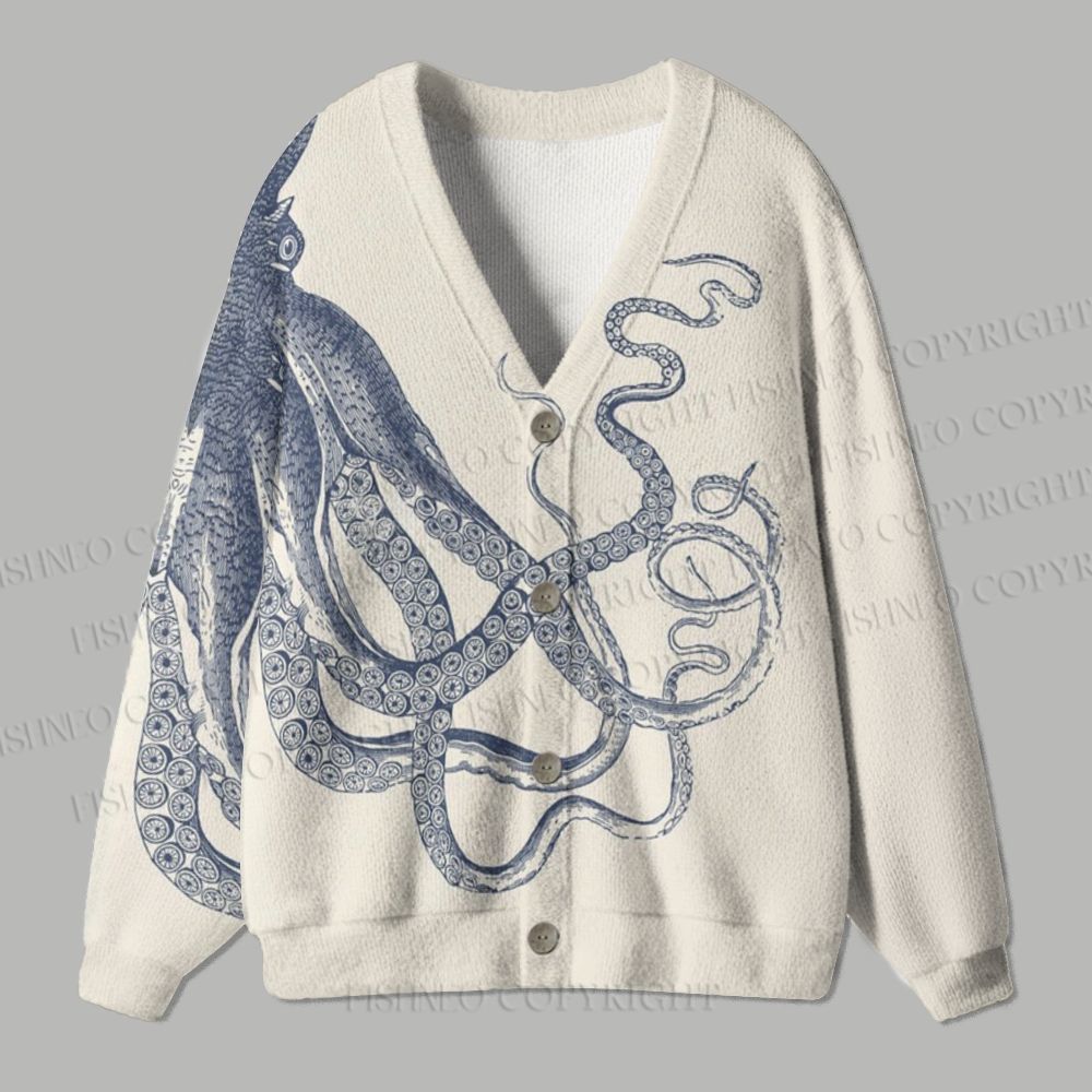 Vintage Octopus Printed Ugly Cardigan Sweater