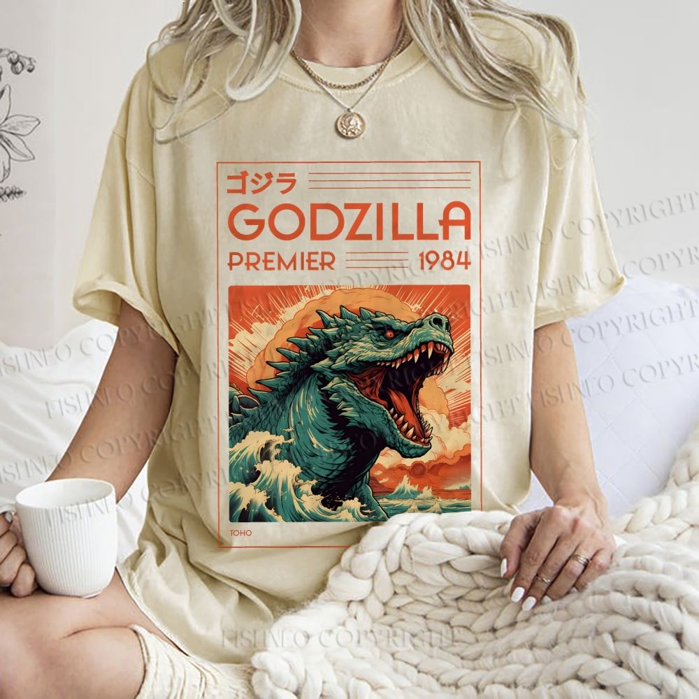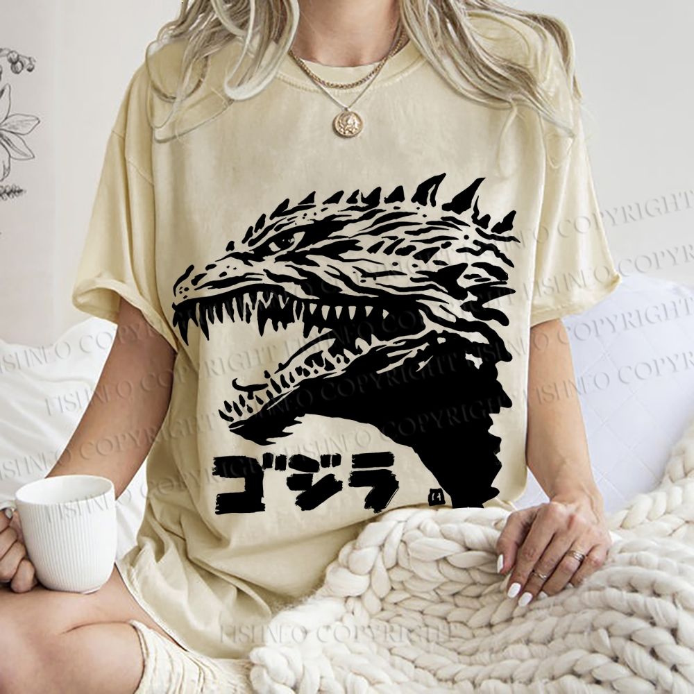Unisex Vintage Japanese Godzilla Printed Washed Tee