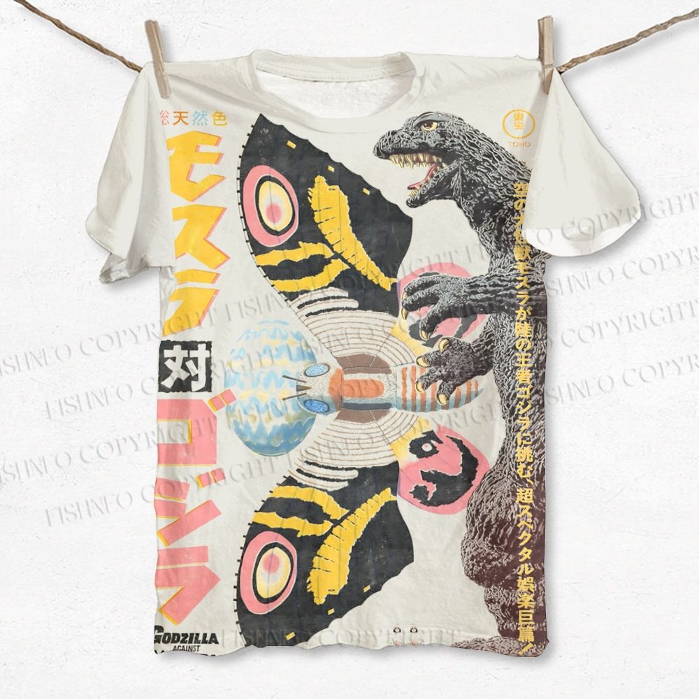 Unisex Vintage Japanese Godzilla Printed Classic Cotton T-shirt