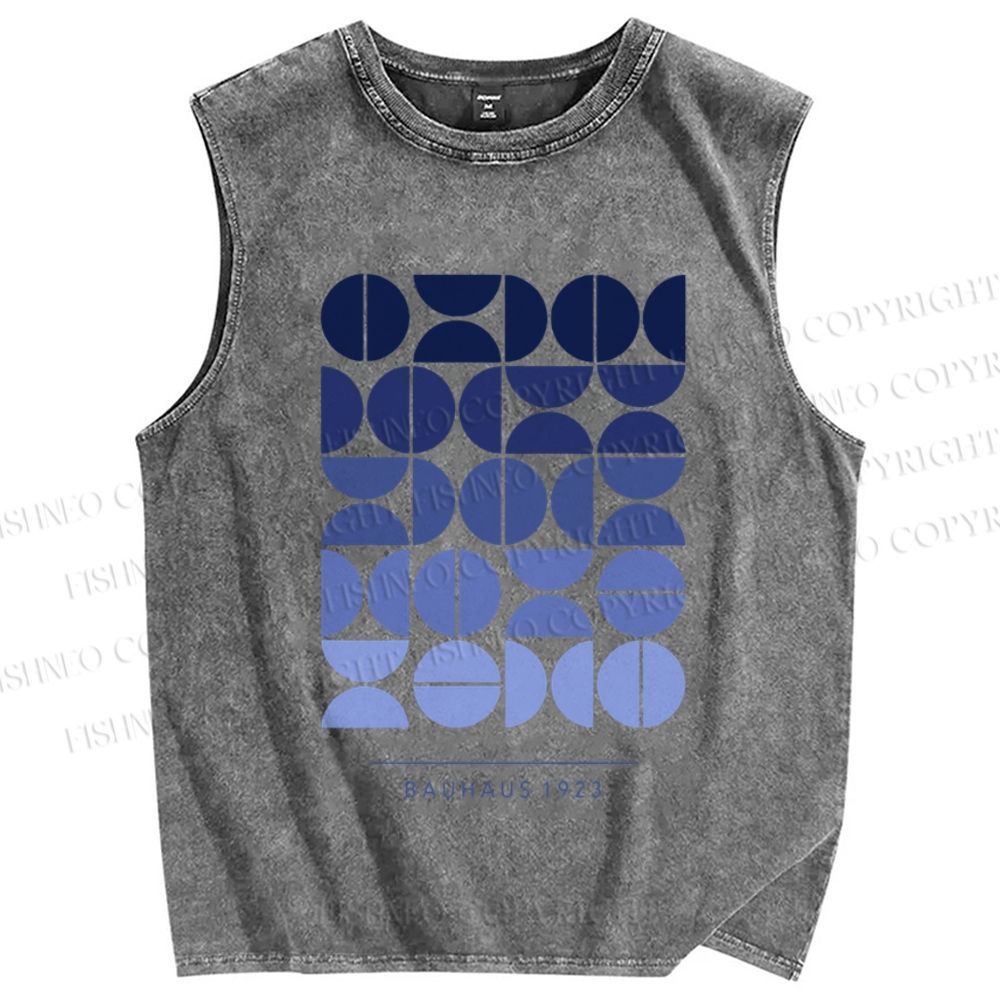 Unisex Blue Bauhaus Design Printed Washed Tank Top