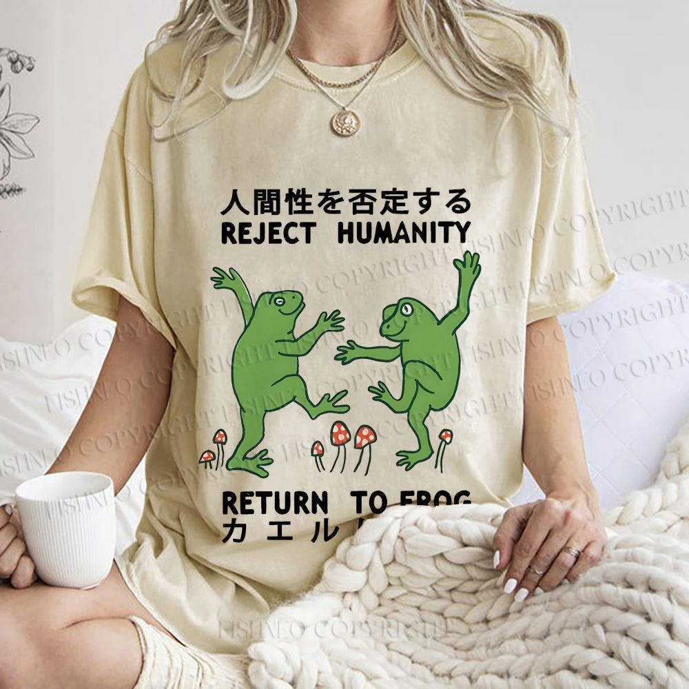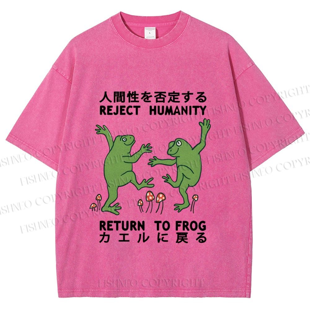 Unisex Funny Frog Reject Humanity Return To Frog Printed Washed Tee