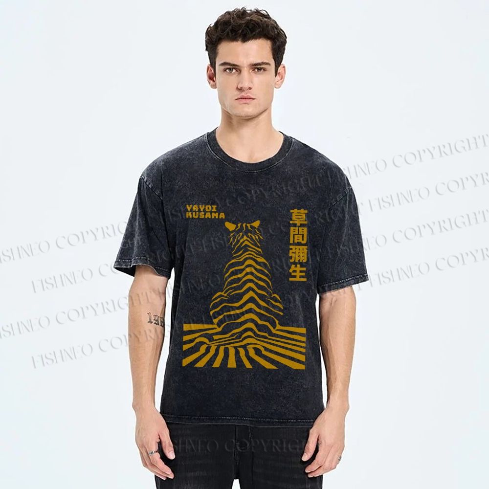 Unisex Japanese Yayoi Kusama Panther Printed Washed Tee