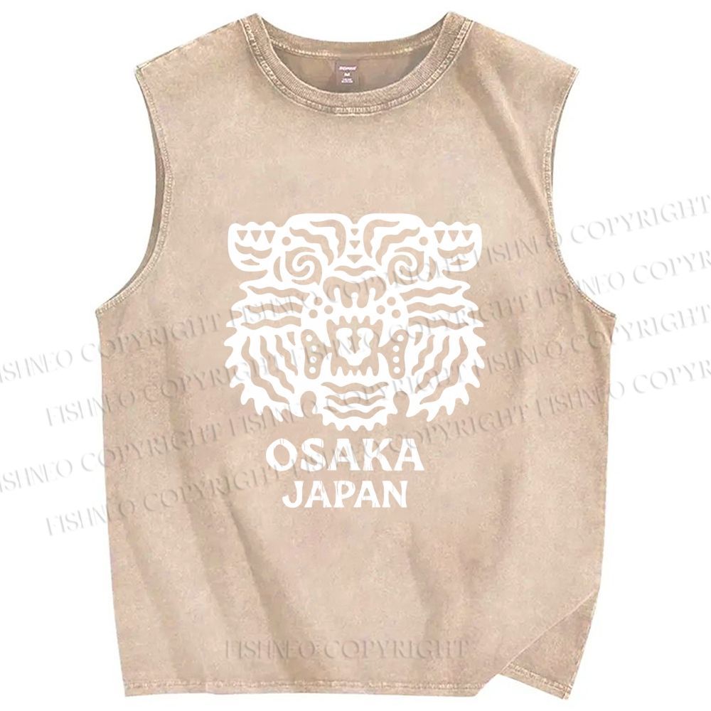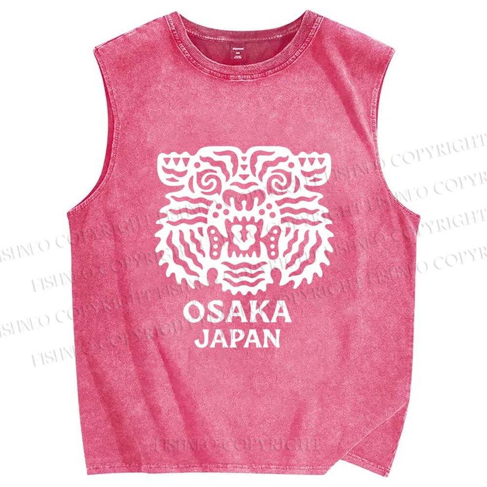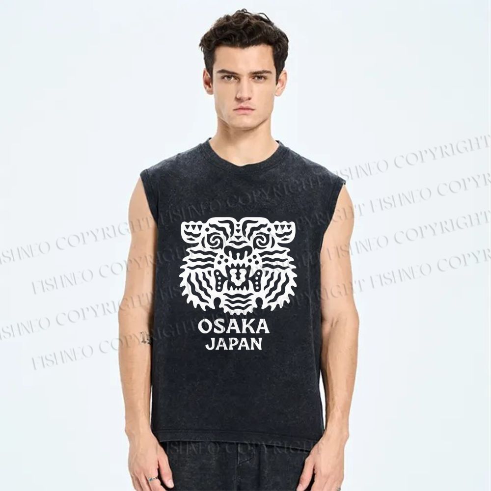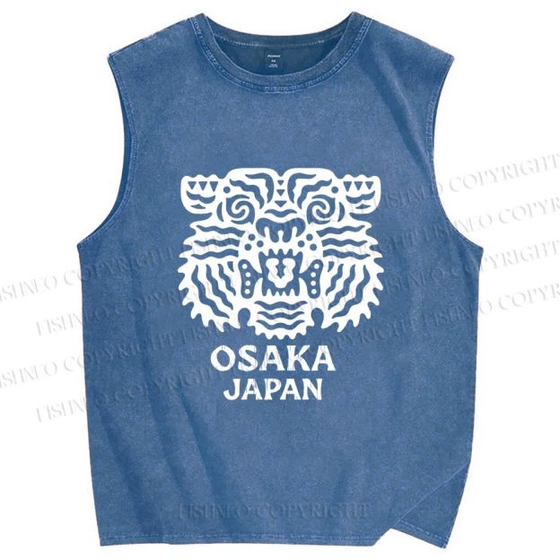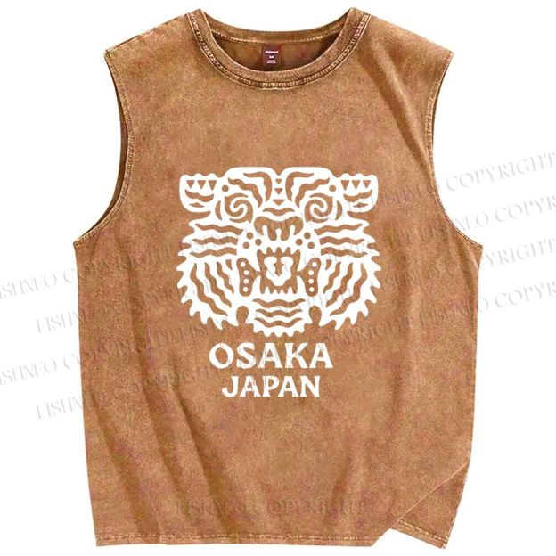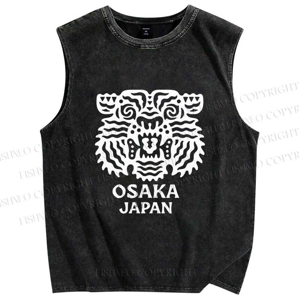 Unisex Osaka Japan Tiger Printed Washed Tank Top