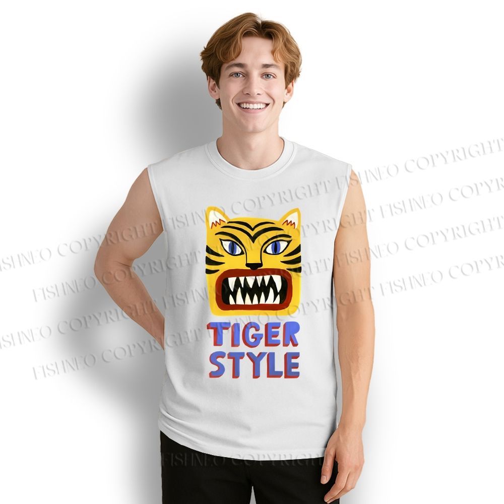 Unisex Tiger Style Printed Cotton Tank Top