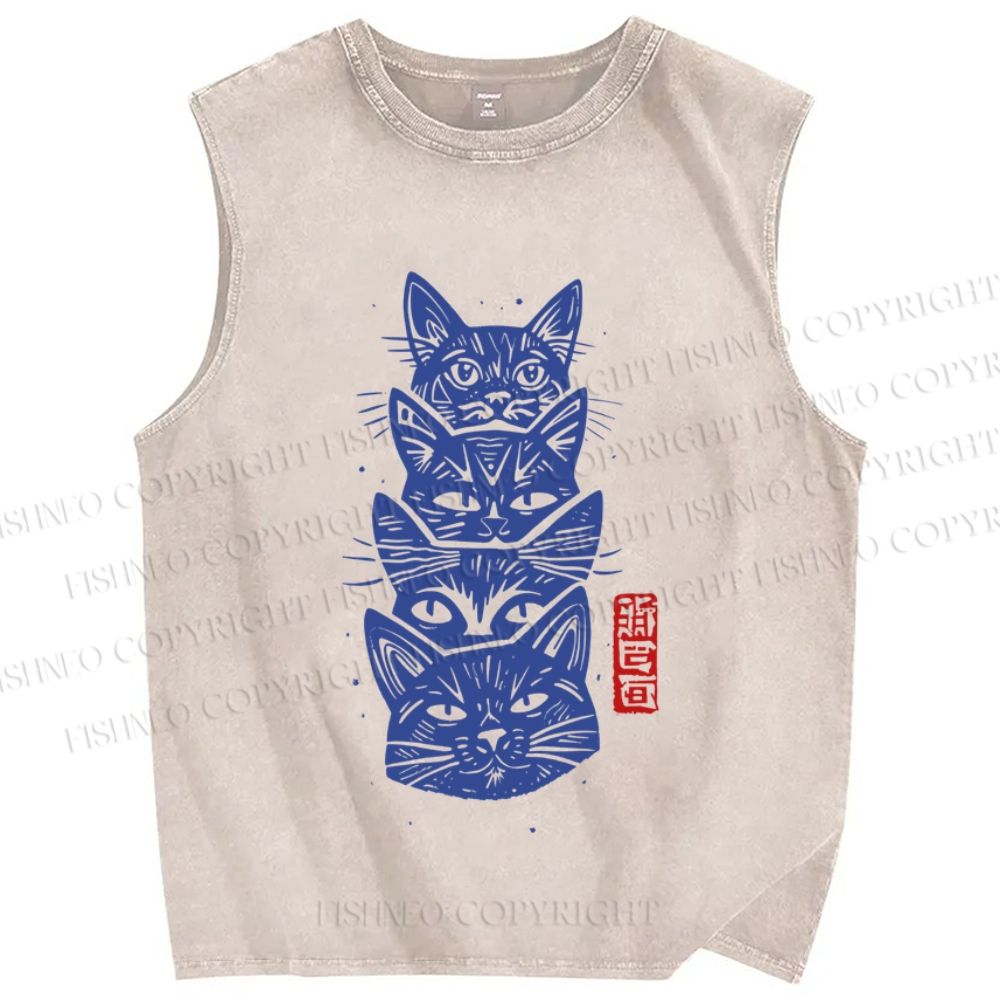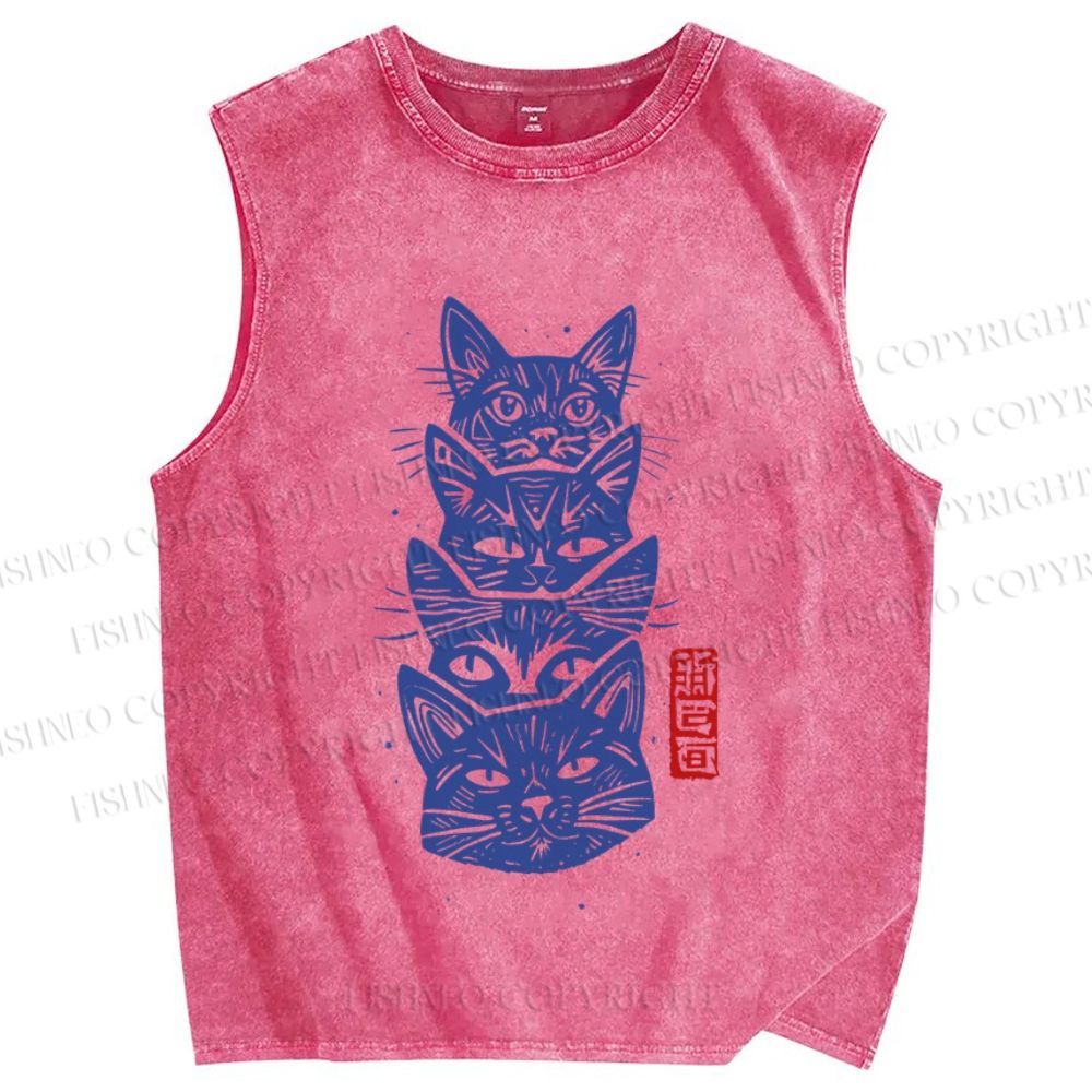 Unisex Vintage Cat Printed Washed Tank Top