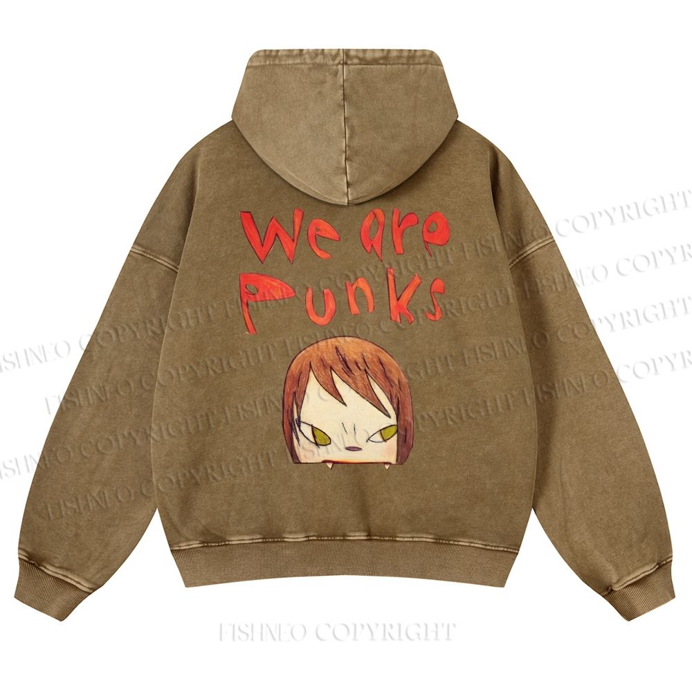 Unisex We Are Punks Yoshitomo Nara Printed Casual Washed Hoodie